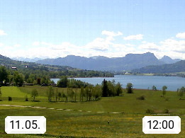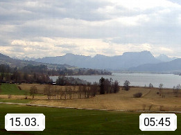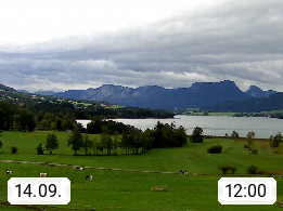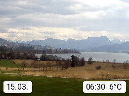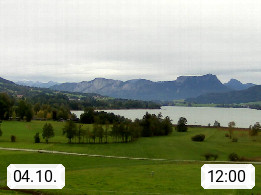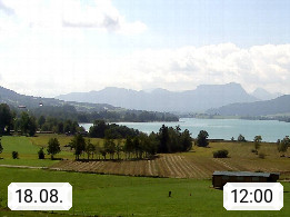 Irrsee 553m, hat eine Wasserfläche von 3,5 km² und steht unter Naturschutz. Der Irrsee auch Zellersee genannt, gilt als der wärmste See des Salzkammergutes. Die Gemeinden rund um den Irrsee sind Oberhofen - Zell am Moos - Tiefgraben. Blick Richtung Süden zum Schafberg 1.782m. Präsentiert von http://www.sunnhof.at.