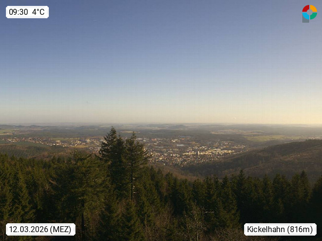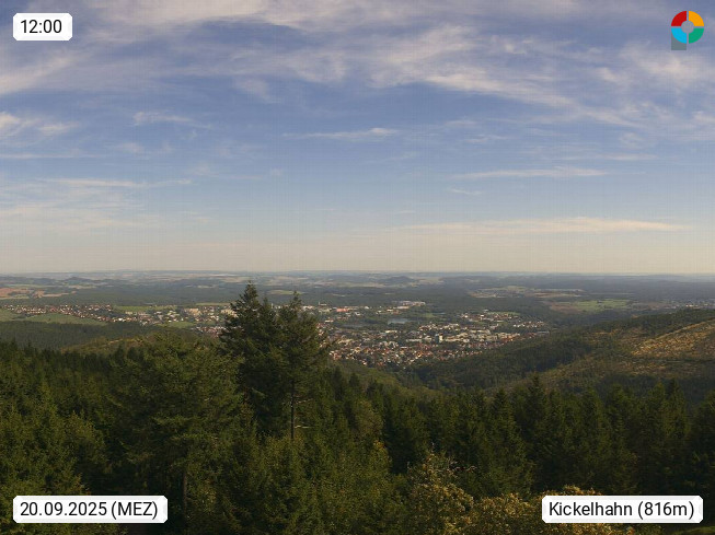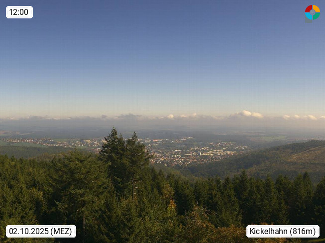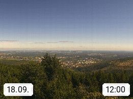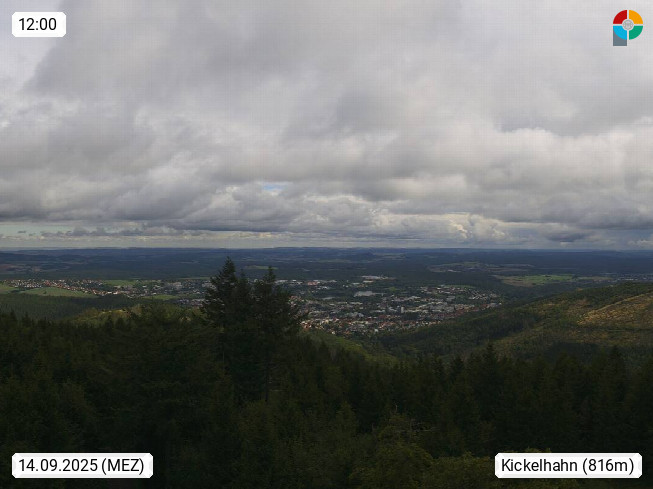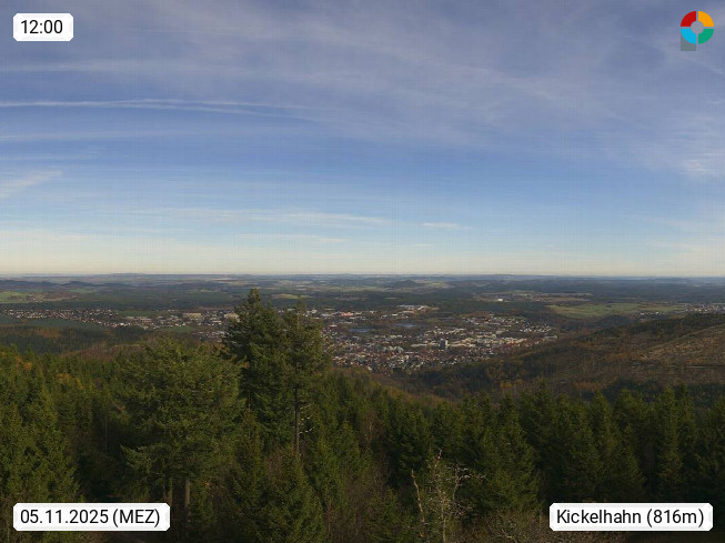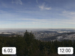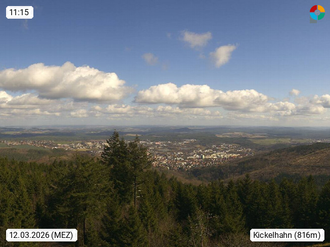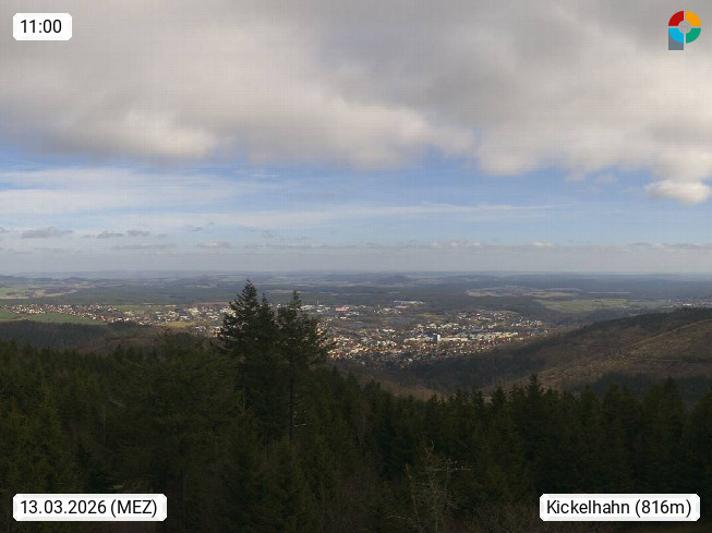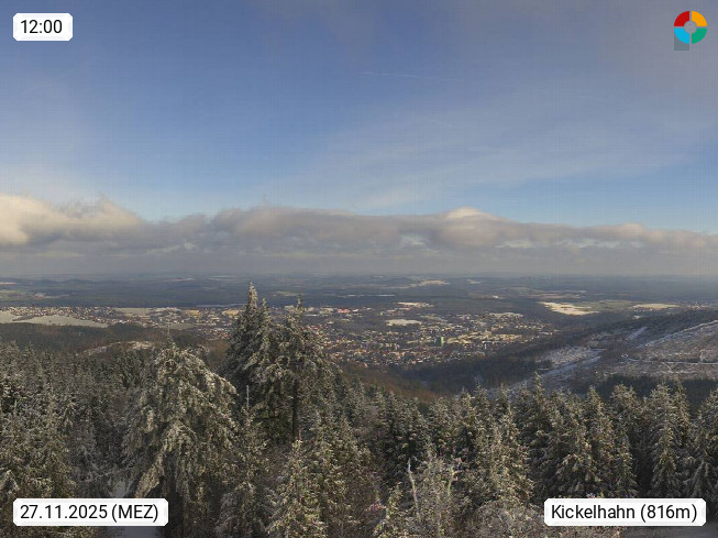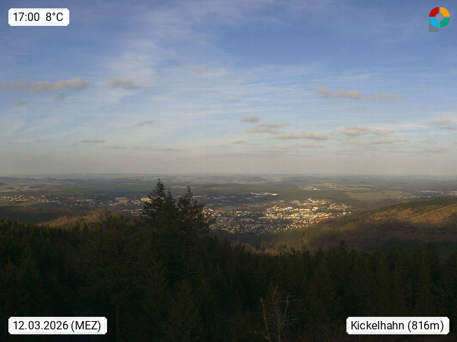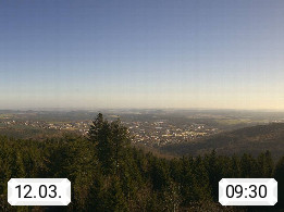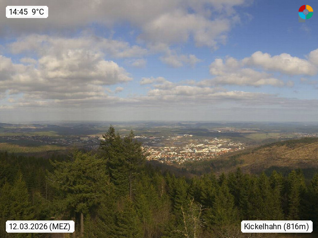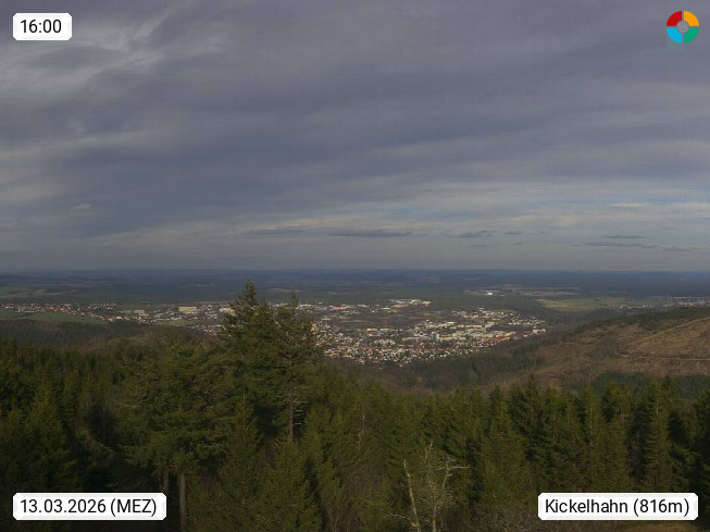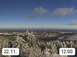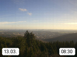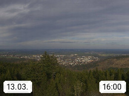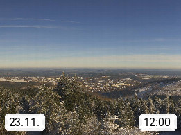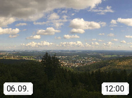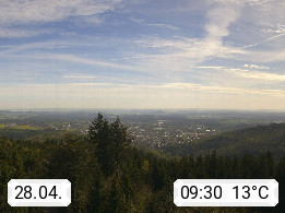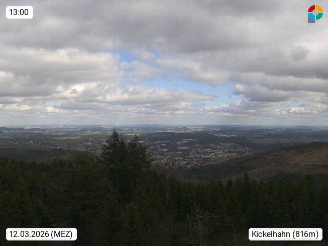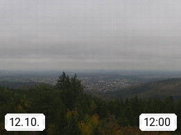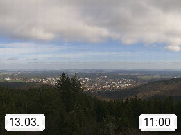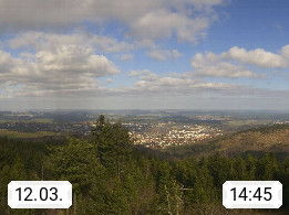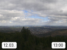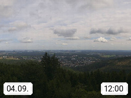 D 98693 Ilmenau Kicklehahn 861m, Goethe und Universitätsstadt im Tal der Ilm am Nordrand des Thüringer Waldes. Panoramablick vom Kickelhahnturm 888m Richtung Westen zum Großen Finsterberg 944m, den Schneekopf 978m und weitere Berge entlang des Rennsteigs, einem 170 km langen Kammweg. Präsentiert von https://www.ilmenau.de/.