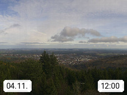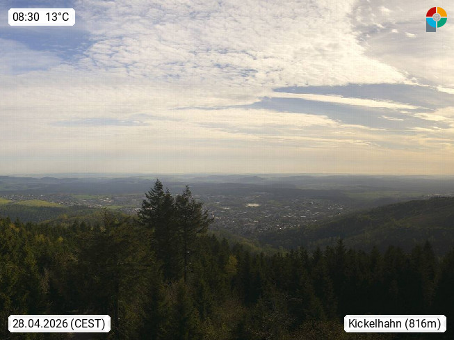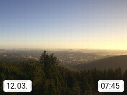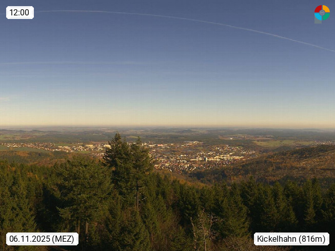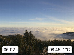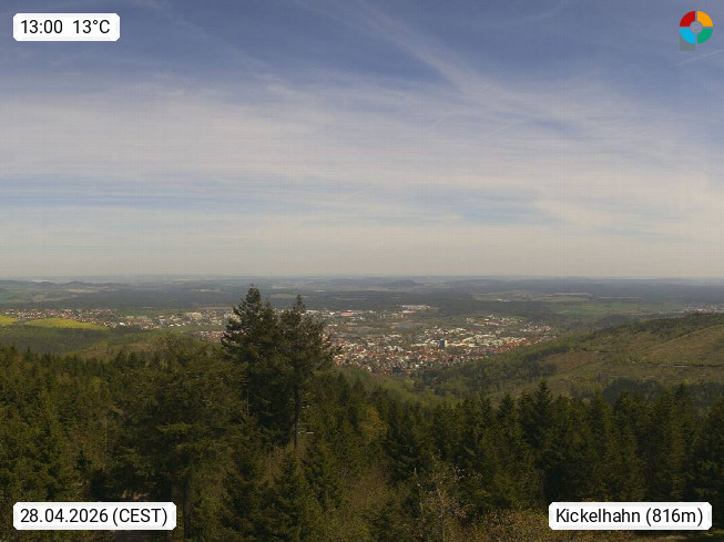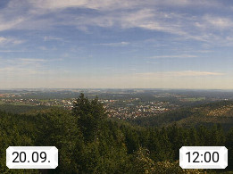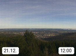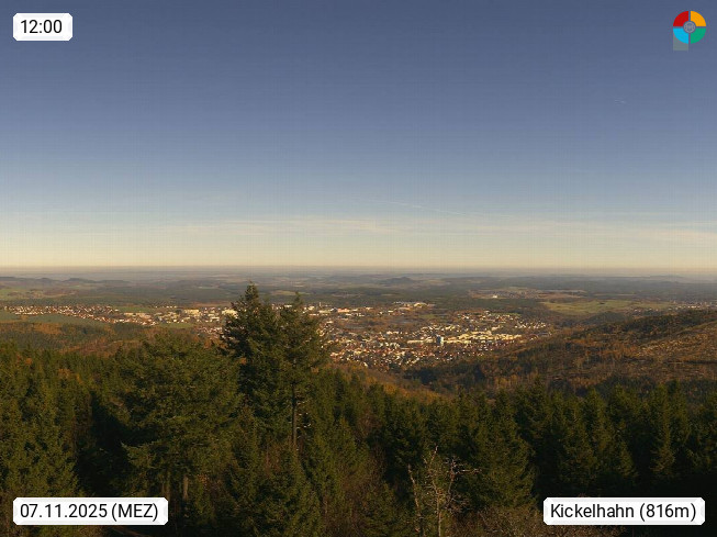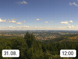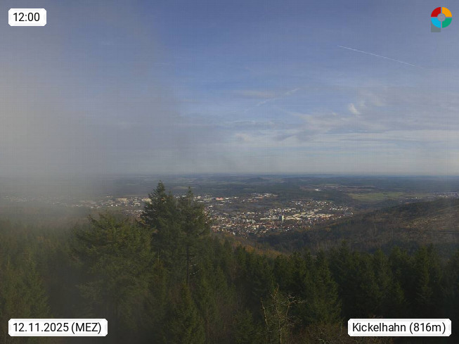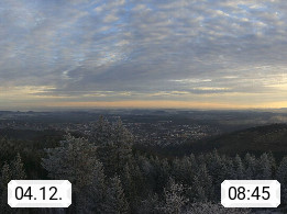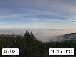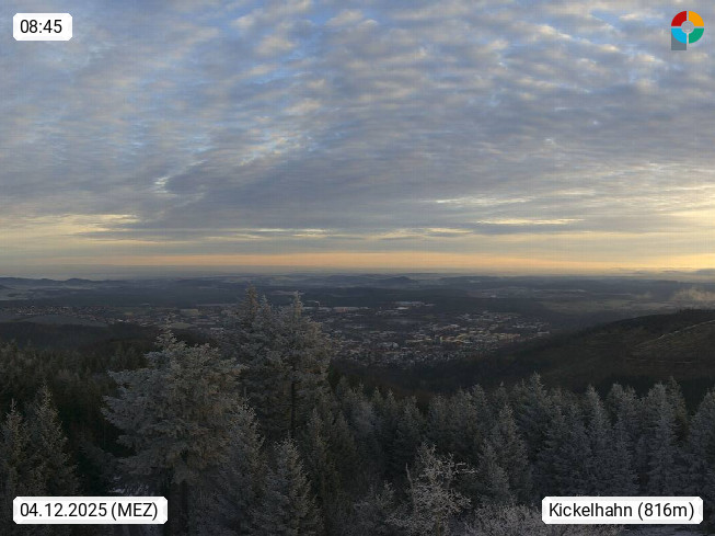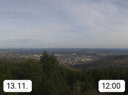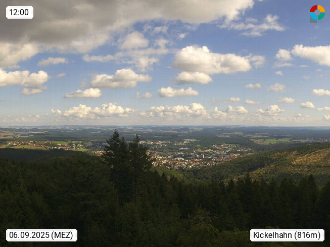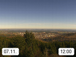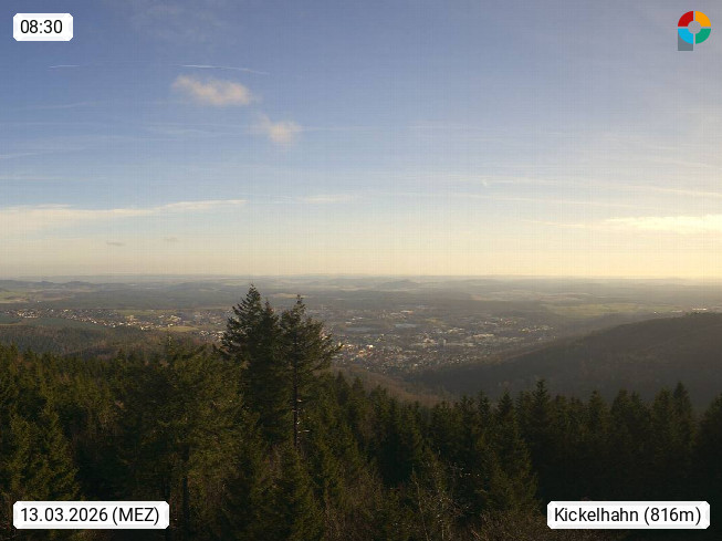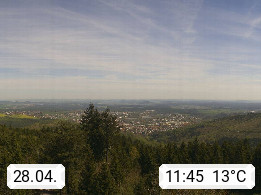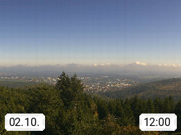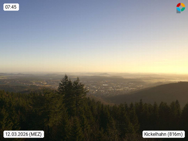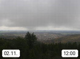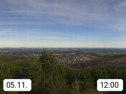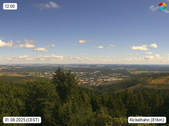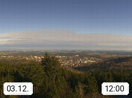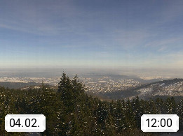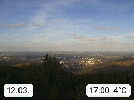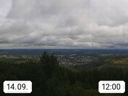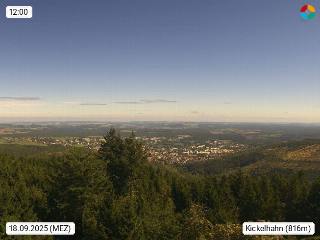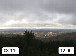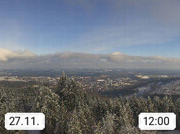 D 98693 Ilmenau Kicklehahn 861m, Goethe und Universitätsstadt im Tal der Ilm am Nordrand des Thüringer Waldes. Panoramablick vom Kickelhahnturm 888m Richtung Westen zum Großen Finsterberg 944m, den Schneekopf 978m und weitere Berge entlang des Rennsteigs, einem 170 km langen Kammweg. Präsentiert von https://www.ilmenau.de/.