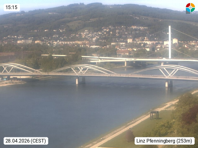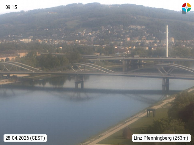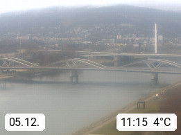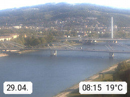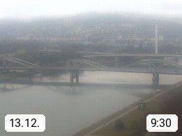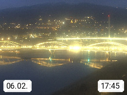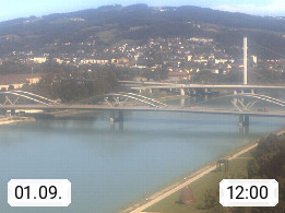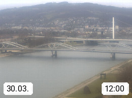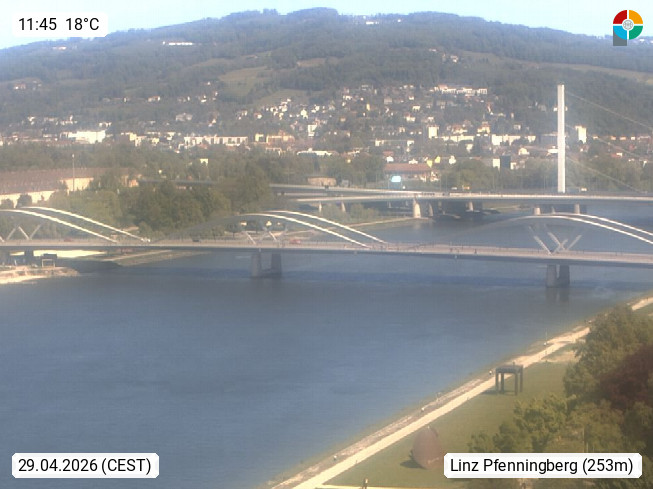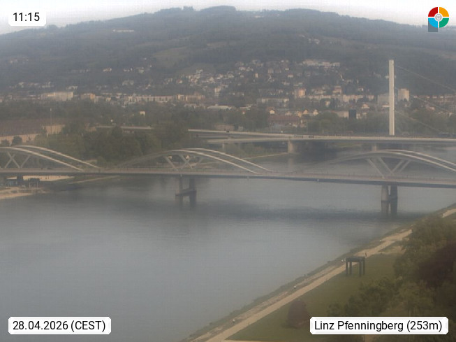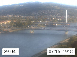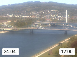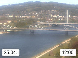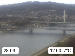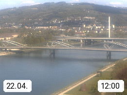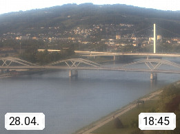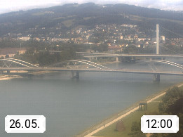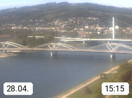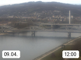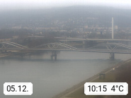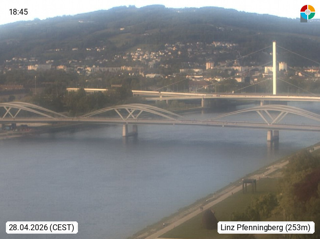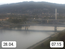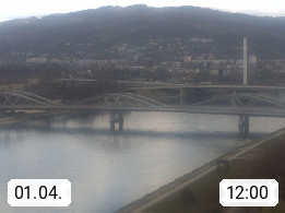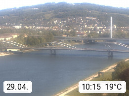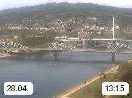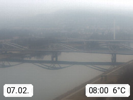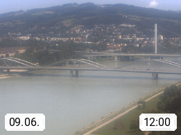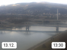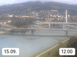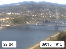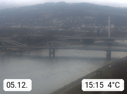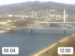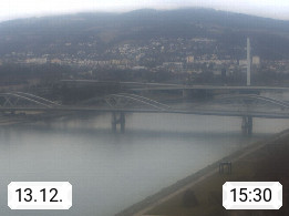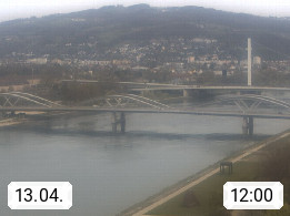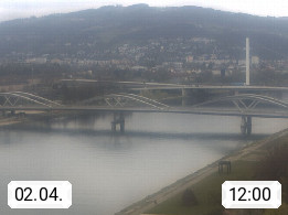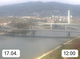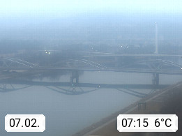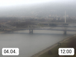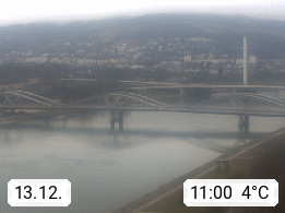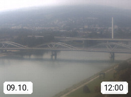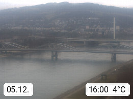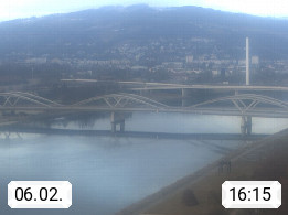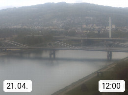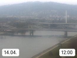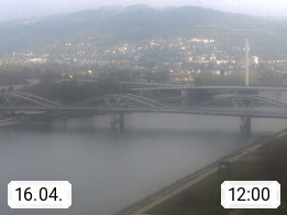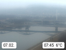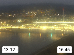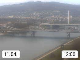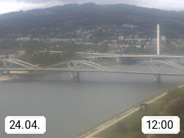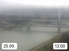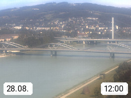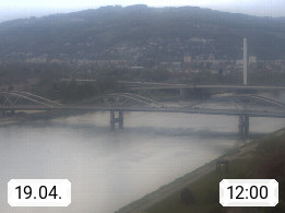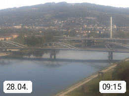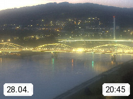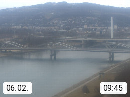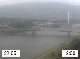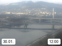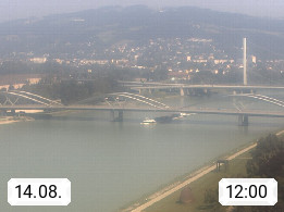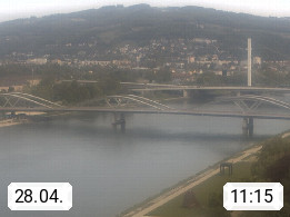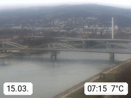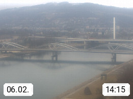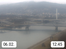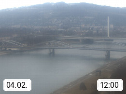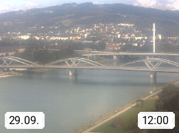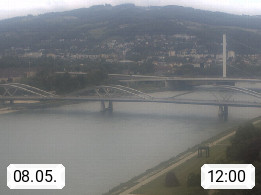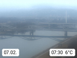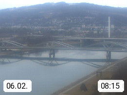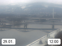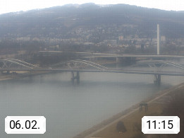 4020 Linz 266m, Landeshauptstadt von Oberösterreich an der Donau. Hier zu sehen sind die Abbrucharbeiten der Linzer Eisenbahnbrücke, mit dem im Juni 2016 begonnen wurde. Links im Bild die Manipulationsfläche, auf der die Brückenteile für den Weitertransport zerlegt werden. Im Hintergrund der Pfenningberg 616m. Präsentiert von http://www.linznet.at.