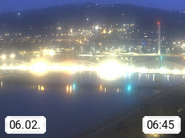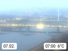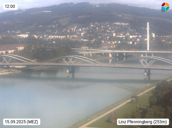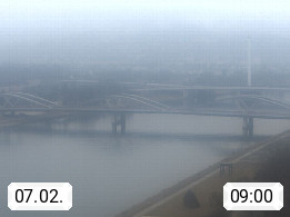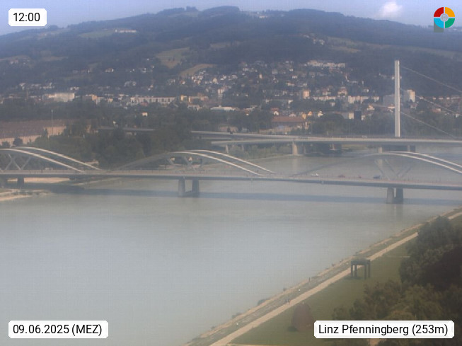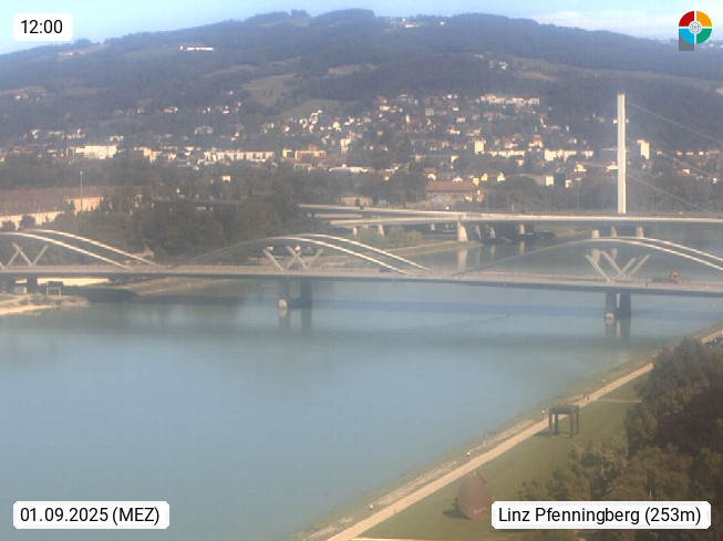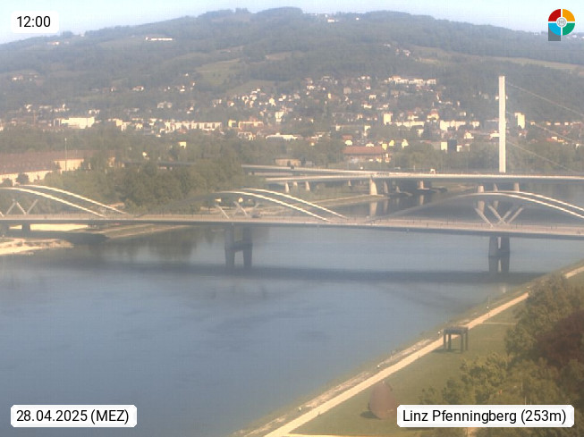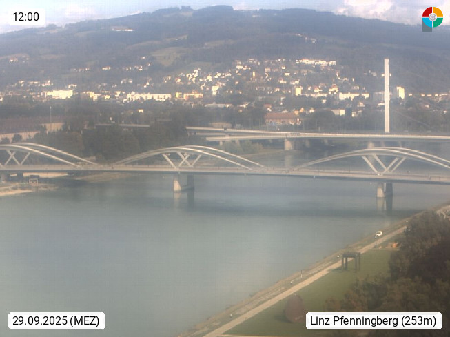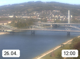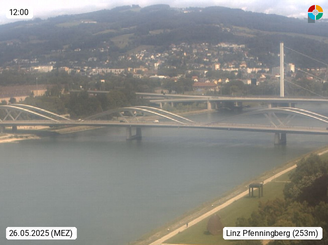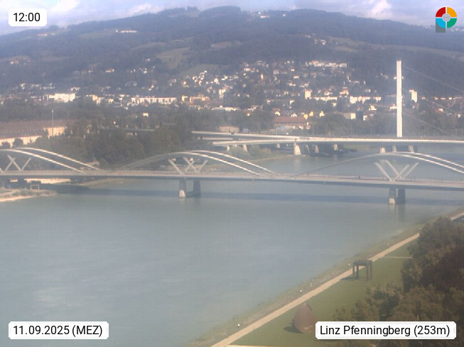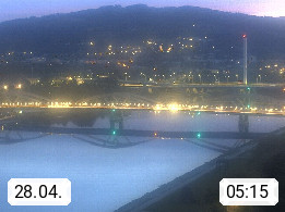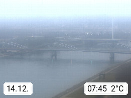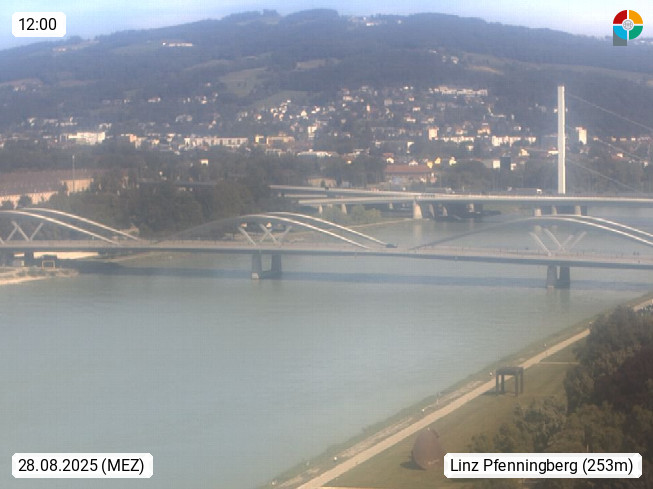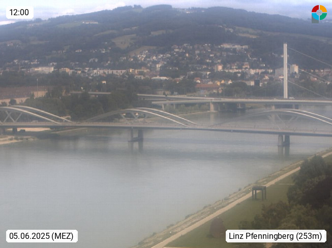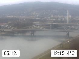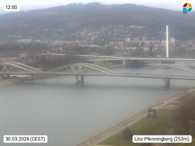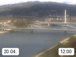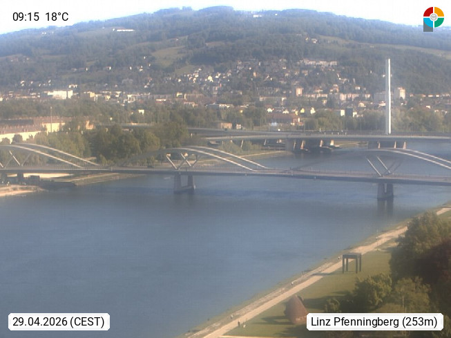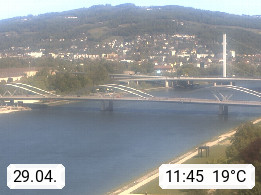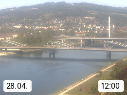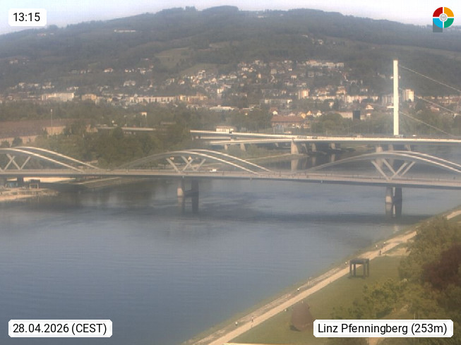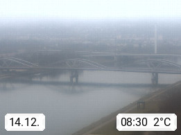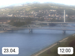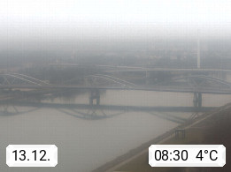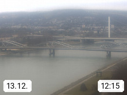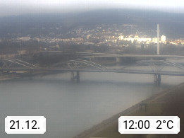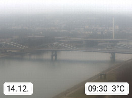 4020 Linz 266m, Landeshauptstadt von Oberösterreich an der Donau. Hier zu sehen sind die Abbrucharbeiten der Linzer Eisenbahnbrücke, mit dem im Juni 2016 begonnen wurde. Links im Bild die Manipulationsfläche, auf der die Brückenteile für den Weitertransport zerlegt werden. Im Hintergrund der Pfenningberg 616m. Präsentiert von http://www.linznet.at.