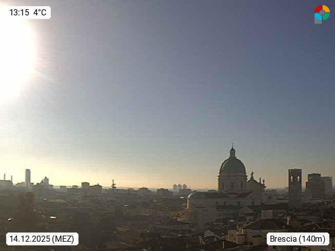 I 20123 Mailand (Milano) 120m, zweitgrößte Stadt Italiens, Hauptstadt der Provinz Mailand und der Region Lombardei in Norditalien. Blick Richtung Norden zum Mailänder Dom in der Innenstadt, Meisterwerk der italienischen Gotik und viertgrösste Kirche der Welt. Präsentiert von https://www.milanocam.it.