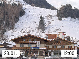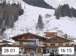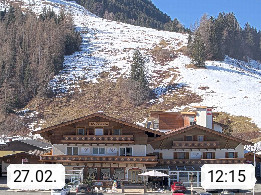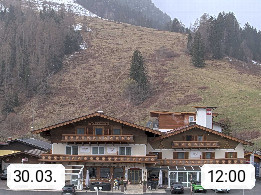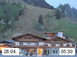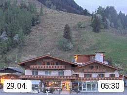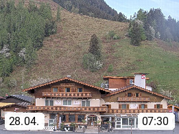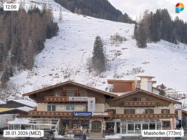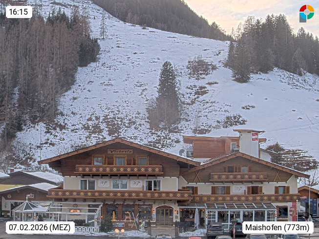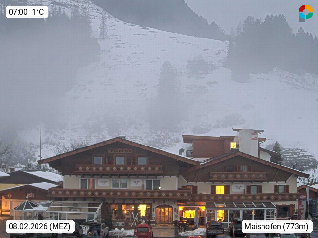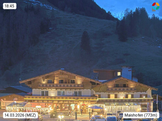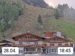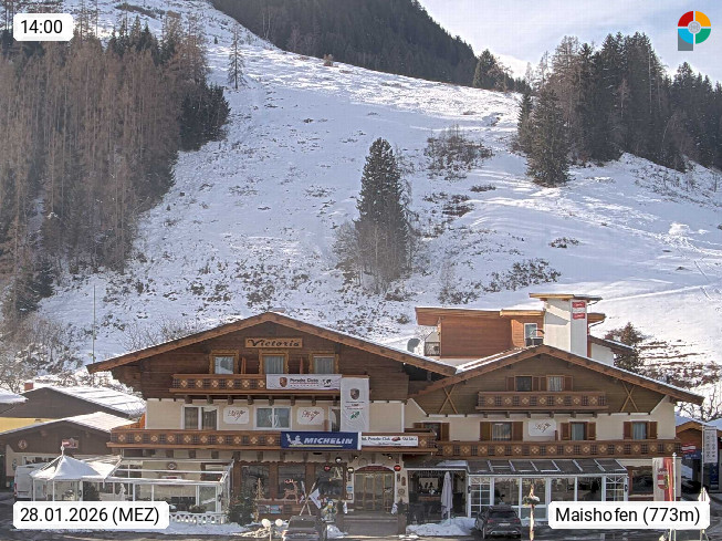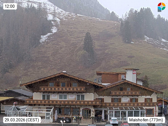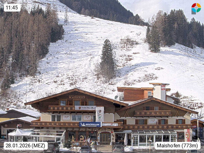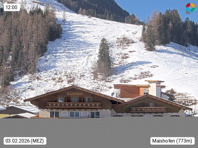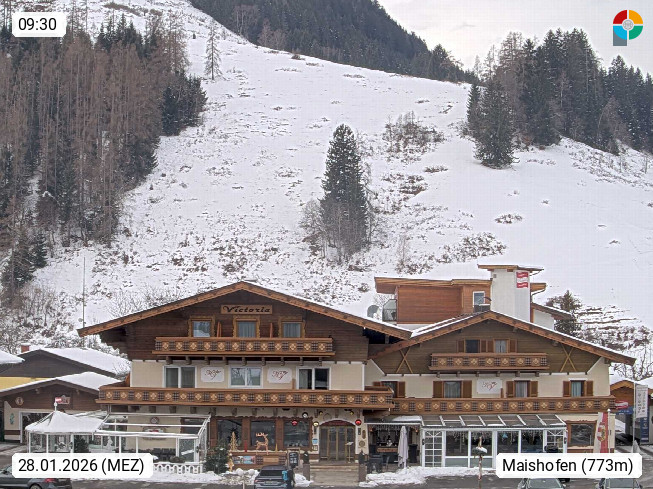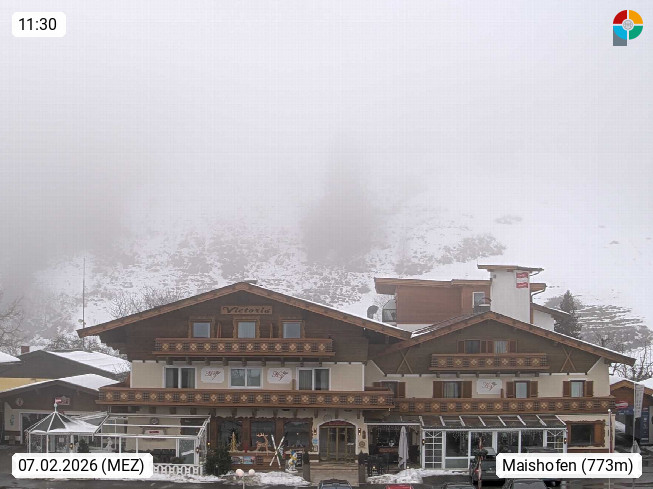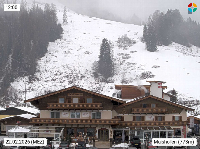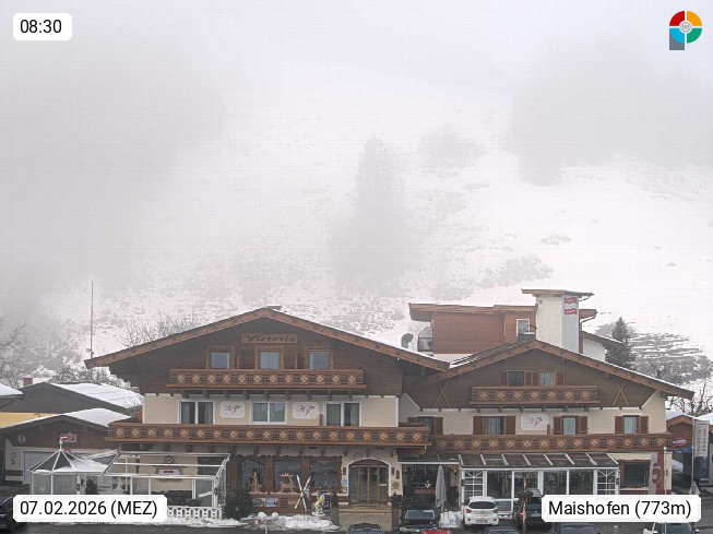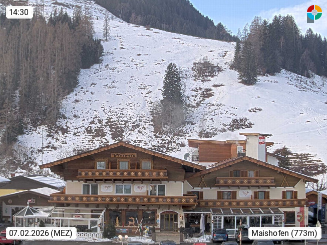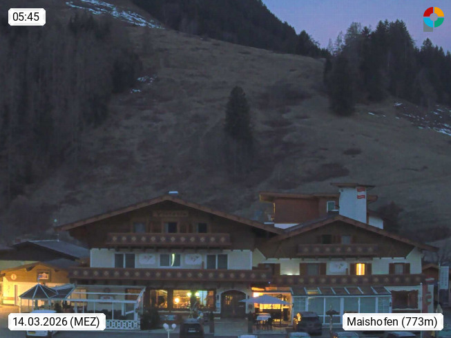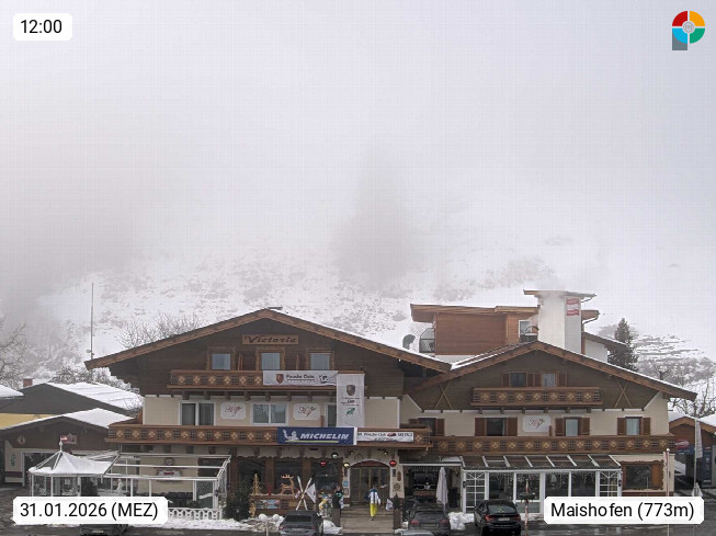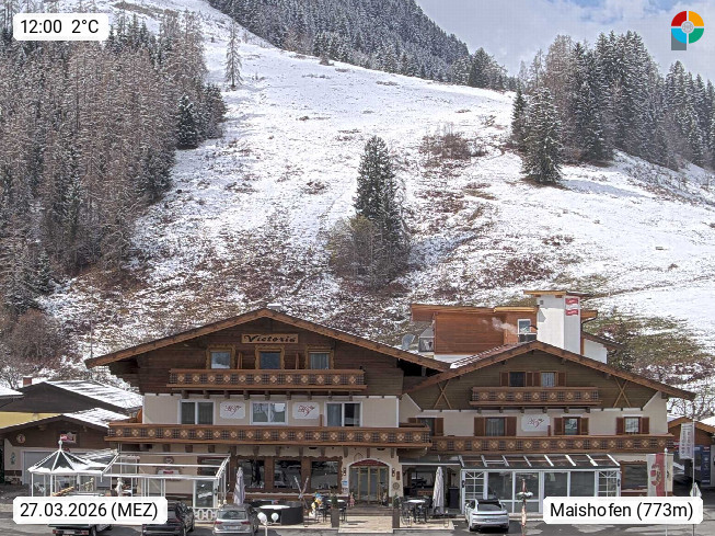 A 5751 Maishofen 768m, Gemeinde im Bezirk Pinzgau zwischen dem Zeller See und Beginn des Glemmtales Richtung Saalbach Hinterglemm, inmitten der Pinzgauer Grasberge. Blick zum Hotel Victoria am Fusse des Atzingerberg und Sausteign 1.800m, Richtung Westen in das Glemmtal. Präsentiert von https://www.hotelvictoria.at/.
