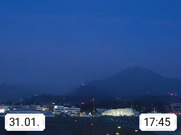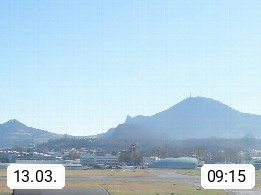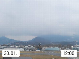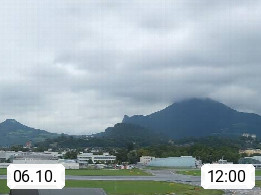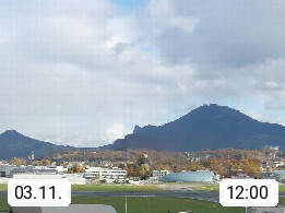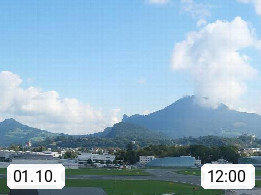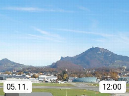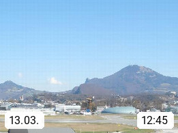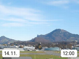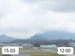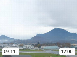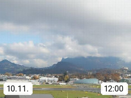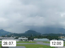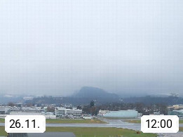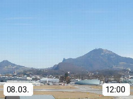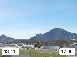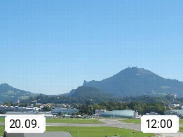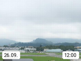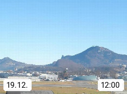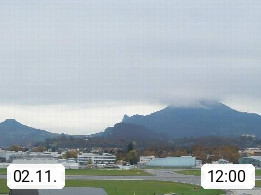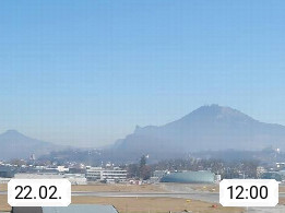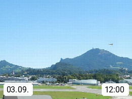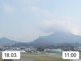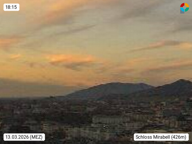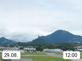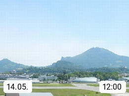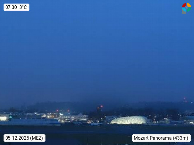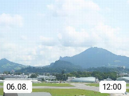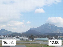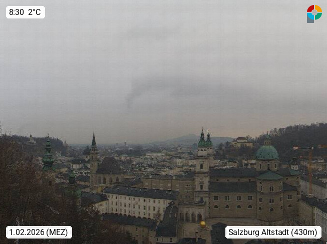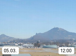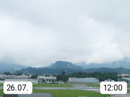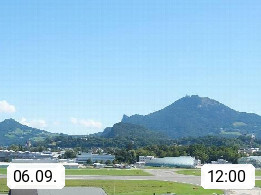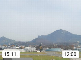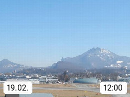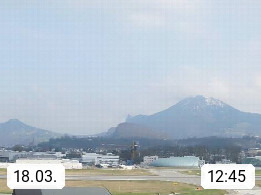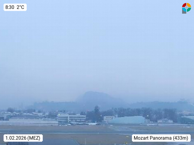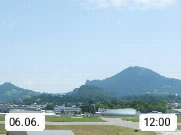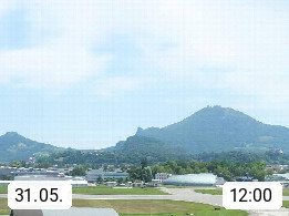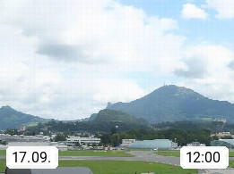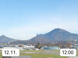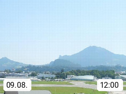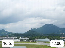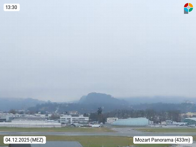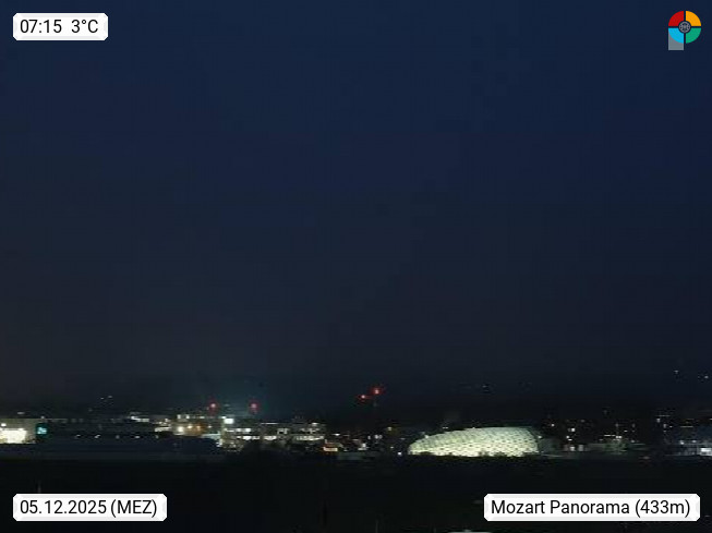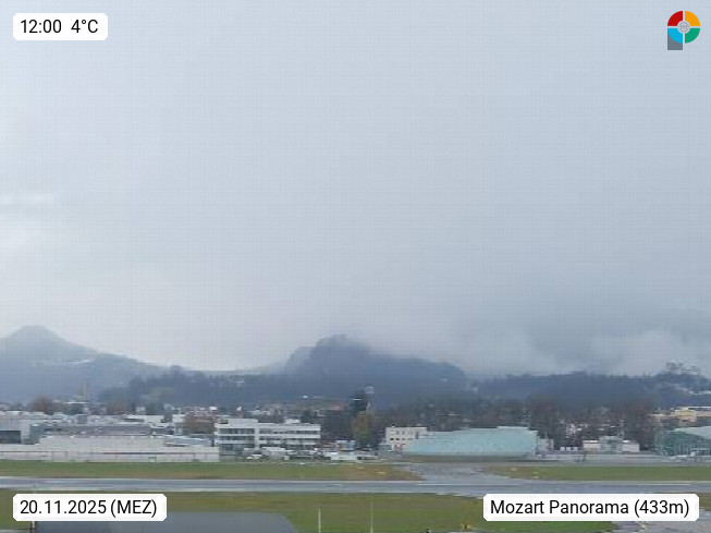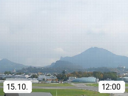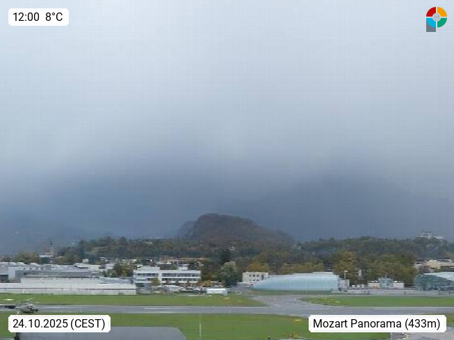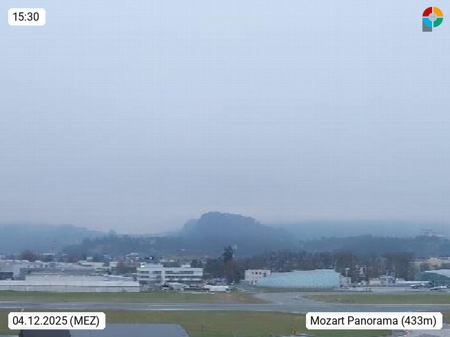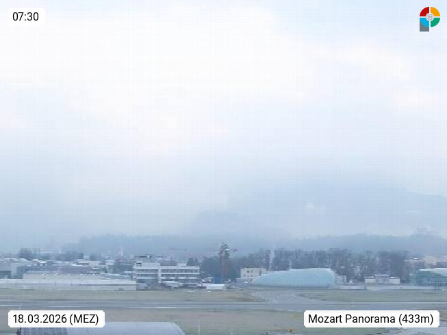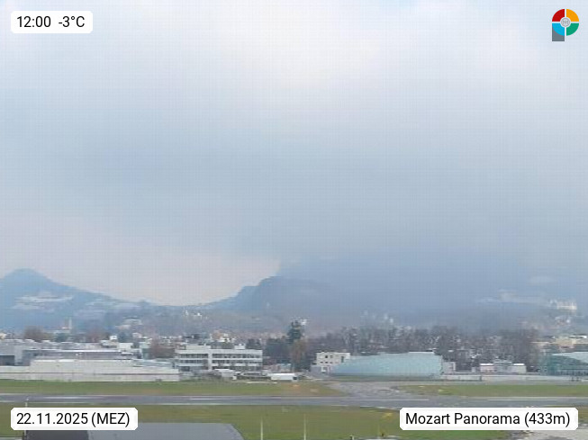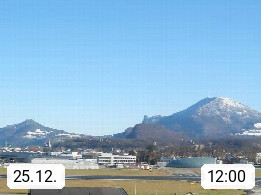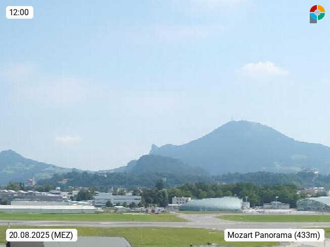 Salzburg 424m, Panoramablick Richtung Südost über die Geburtsstadt von Wolfgang Amadeus Mozart mit Grünmarkt, Kollegienkirche, Stift St. Peter, Hofstallgasse mit Festspielauffahrt, im Hintergrund der Gaisberg 1.287m und die Festung Hohensalzburg gegründet 1077. http://www.hohensalzburg.com Im Vordergrund rechts das Festspielhaus. Präsentiert von https://www.salzburg-airport.com.