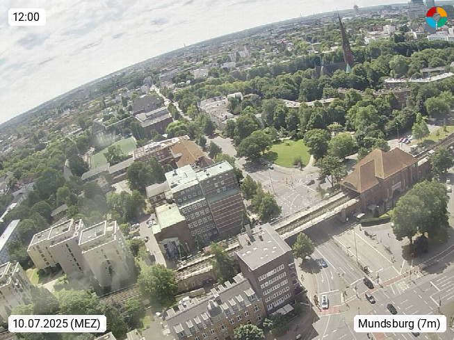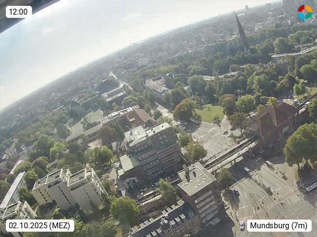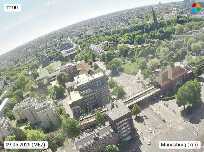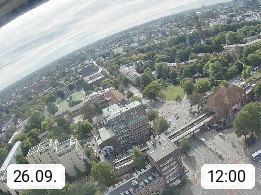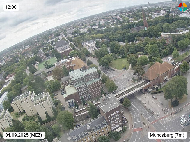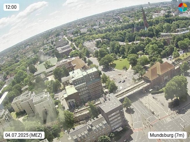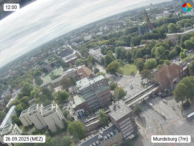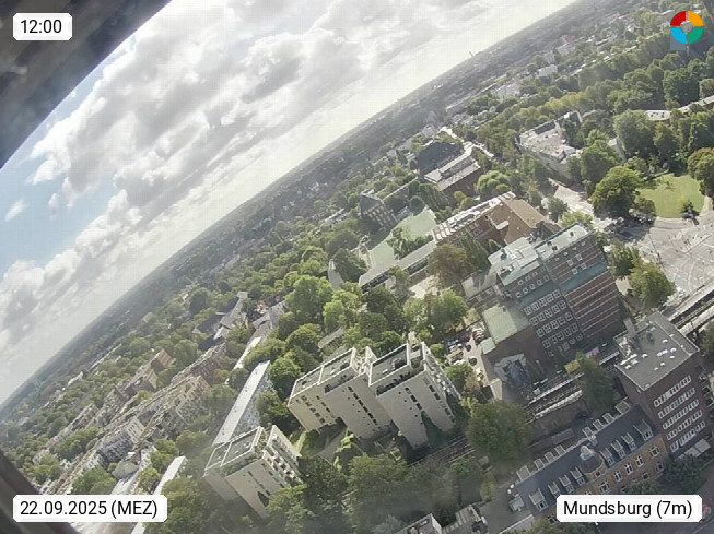 D 22083 Hamburg 9m, Freie Hansestadt Hamburg, niederdeutsch Hamborg liegt in Norddeutschland und ist als Stadtstaat ein eigenes Bundesland und zweitgrößte Stadt Deutschlands. Die Stadt liegt an der Mündung von Alster und Bille in die Elbe, die 110 km weiter nordwestlich in die Nordsee fließt. Der Hamburger Hafen ist der größte Seehafen in Deutschland und der zweitgrößte in Europa. Blick aus dem 28. Stock des bekanntesten Hamburger Hochhaus dem Mundsburg Tower auf die Stadtbezirke Mundsburg, Uhlenhorst und Aussenalster im Stadtzentrum von Hamburg. Präsentiert von http://www.mundsburgtower.de.