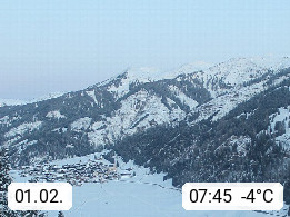 Mit diesem Code können Sie diesen Webcambaustein ganz einfach in Ihre Website einbauen. Klicken Sie dazu auf den Code, kopieren Sie diesen und fügen ihn anschließend ih Ihre Website ein. Der Baustein bietet die gleichen Funktionen, die auch auf panoramablick.com zu sehen sind: Livebild, Tagesverlauf und Archivbilder.