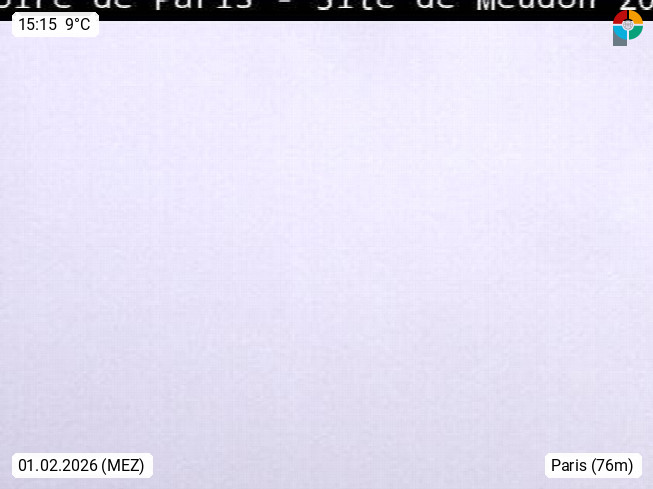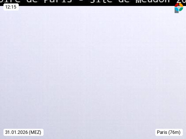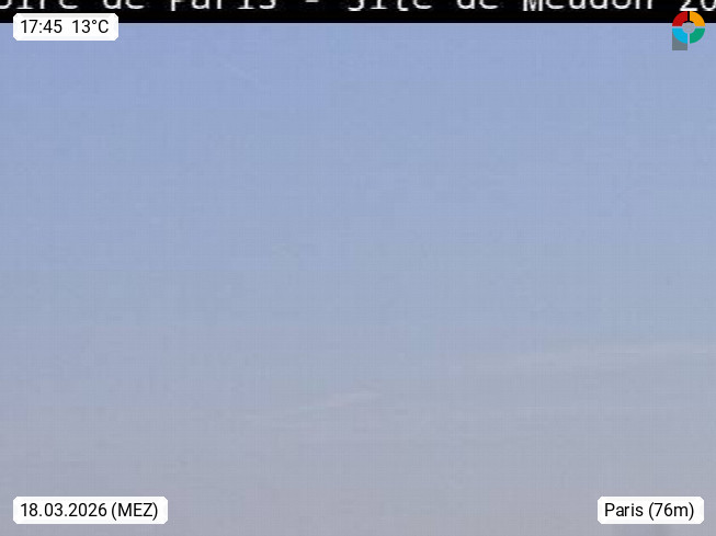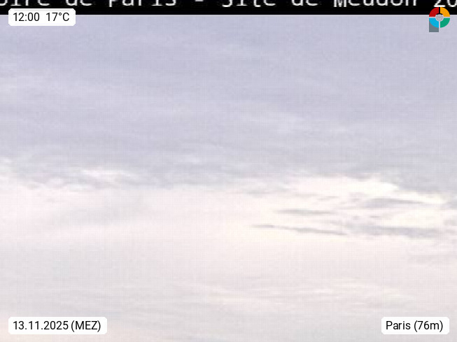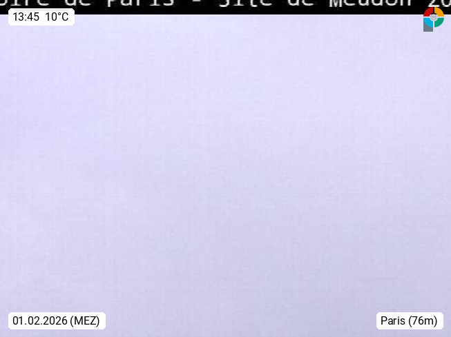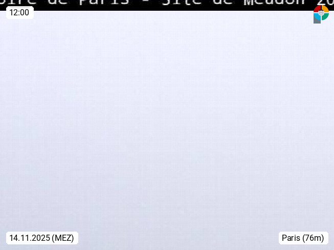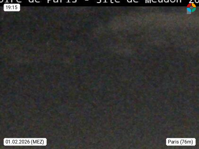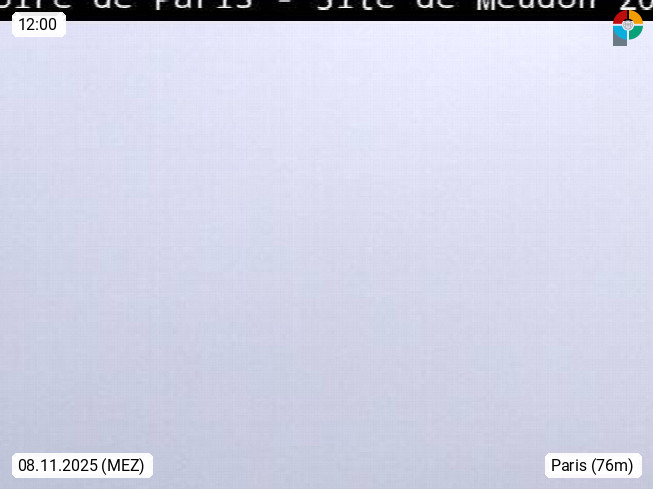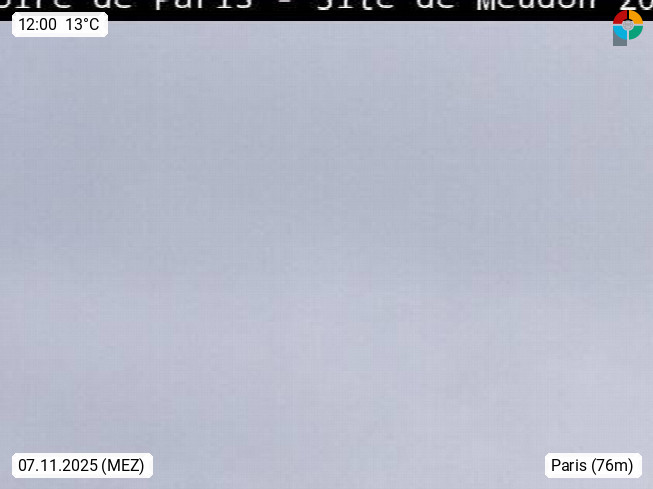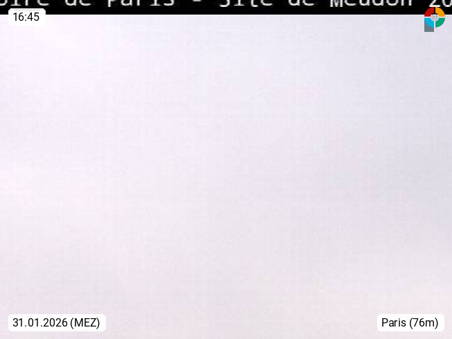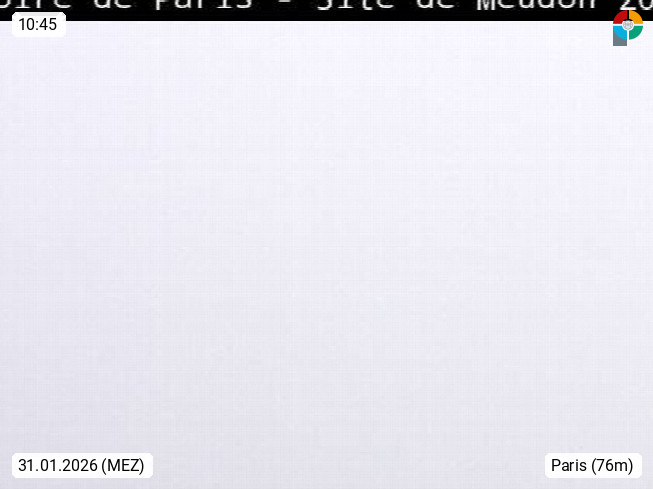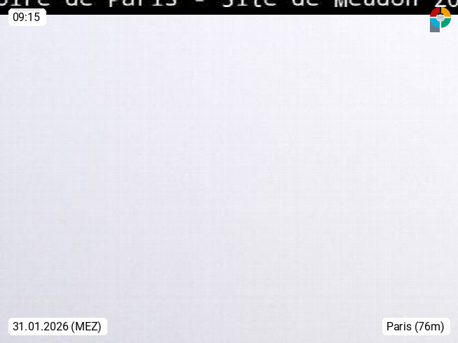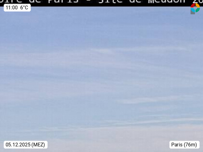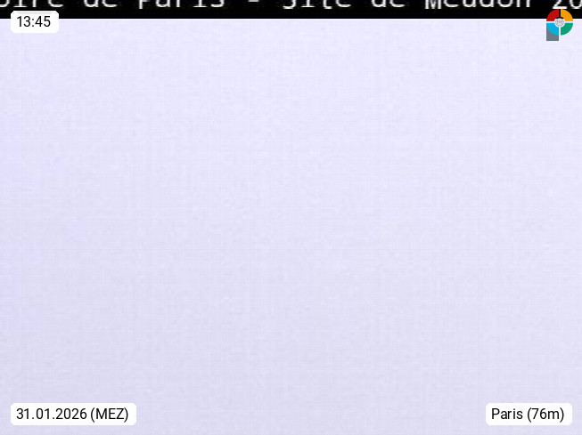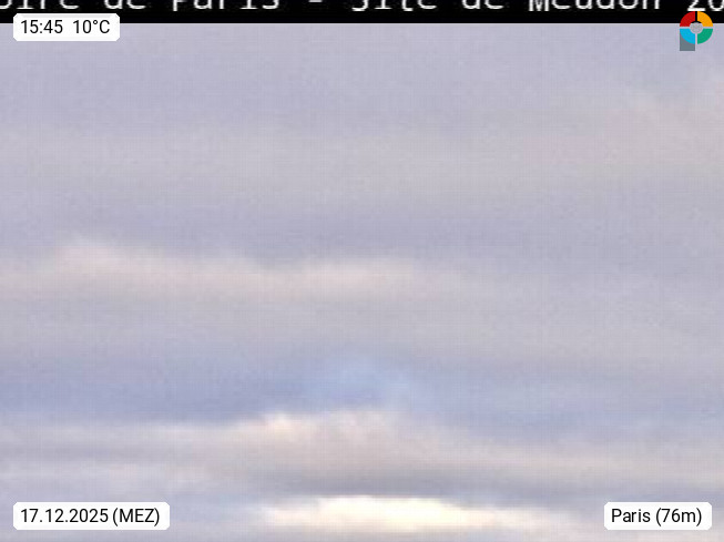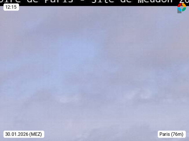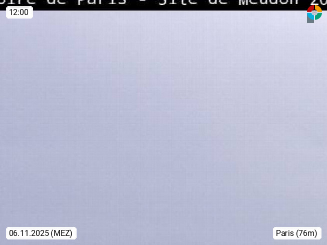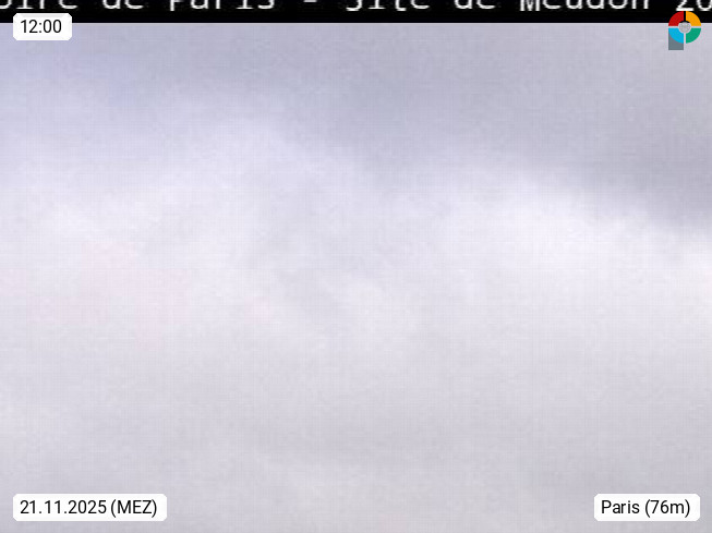 F 75001 Paris 60m, Hauptstadt Frankreichs und der Region Ile de France (Ile de France). Der Fluss Seine teilt die Stadt in einen nördlichen (rive droite rechtes Ufer) und einen südlichen Teil (rive gauche linkes Ufer). Panoramablick von der Innenstadt Richtung Nordwest vom Eiffelturm 325m links, bis rechts der Basilique du Sacre Coeur (Basilika vom Heiligen Herzen) am Montmartre 130 m, der höchsten Erhebung der Stadt. Präsentiert von https://www.obspm.fr.