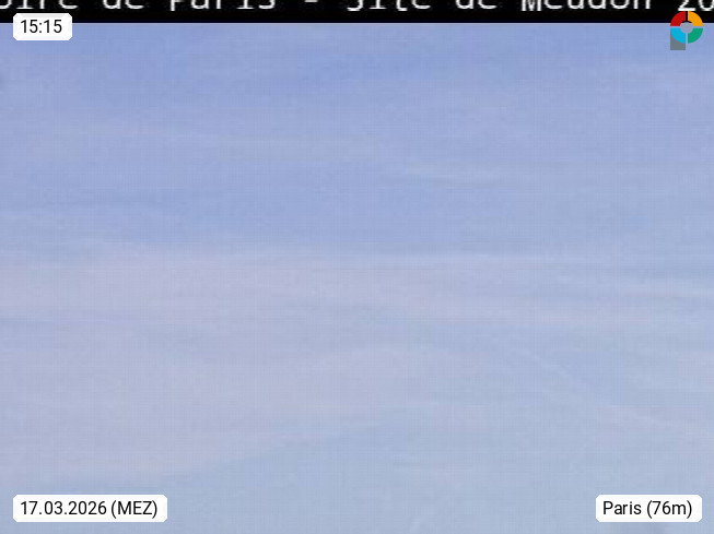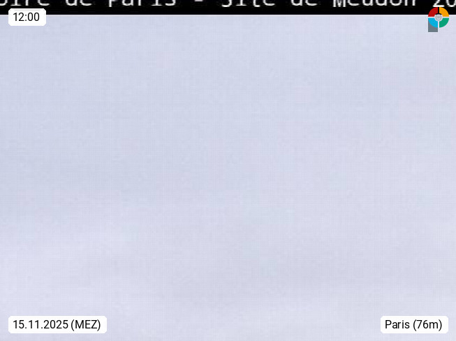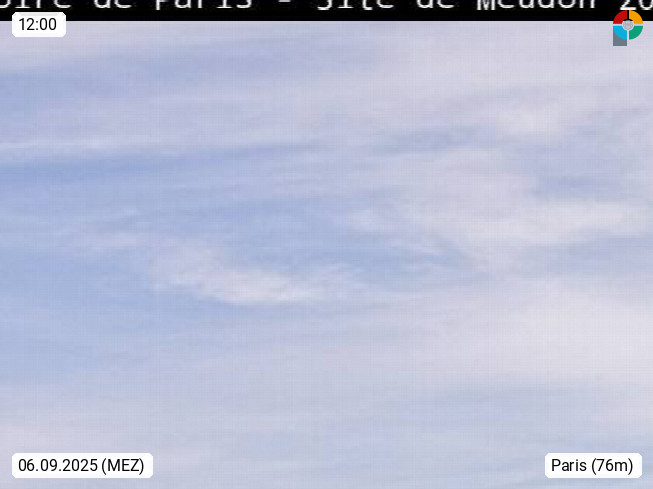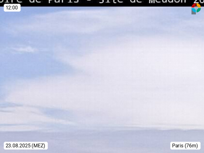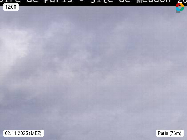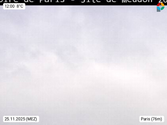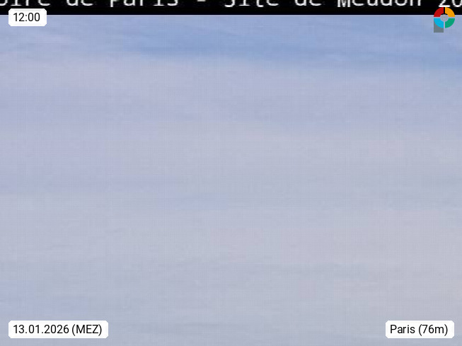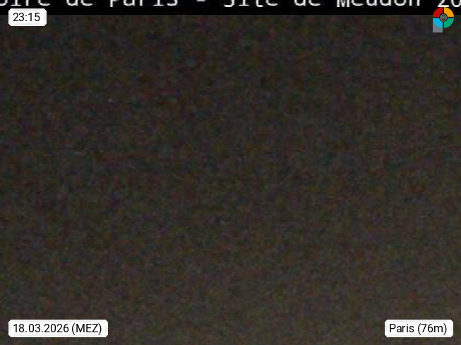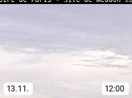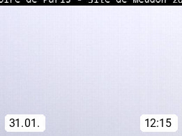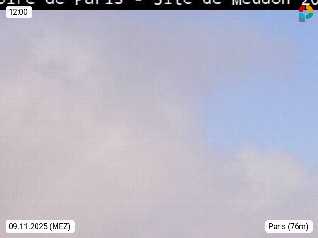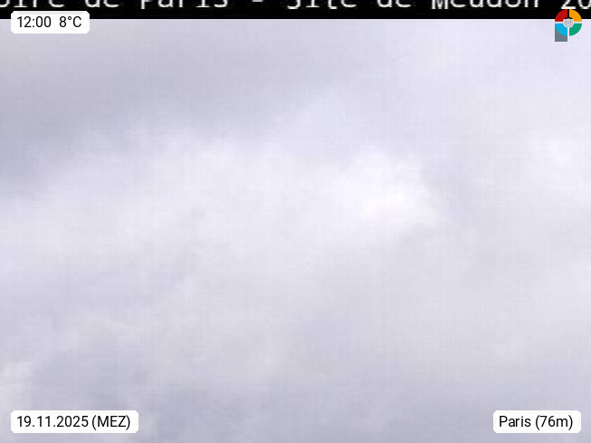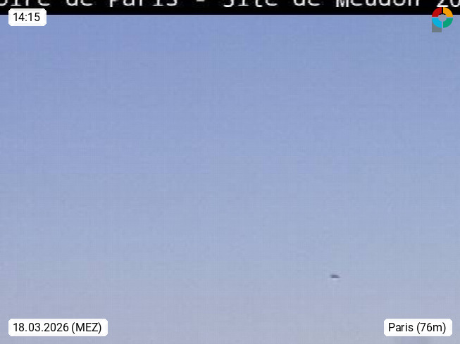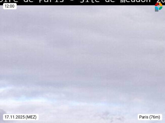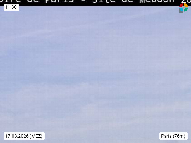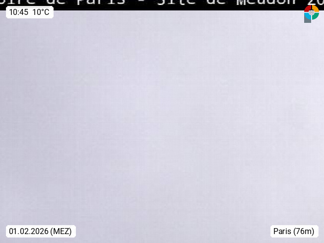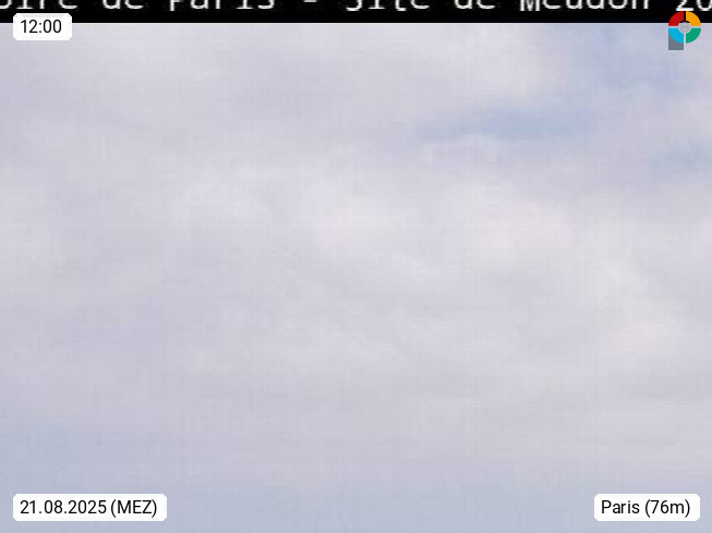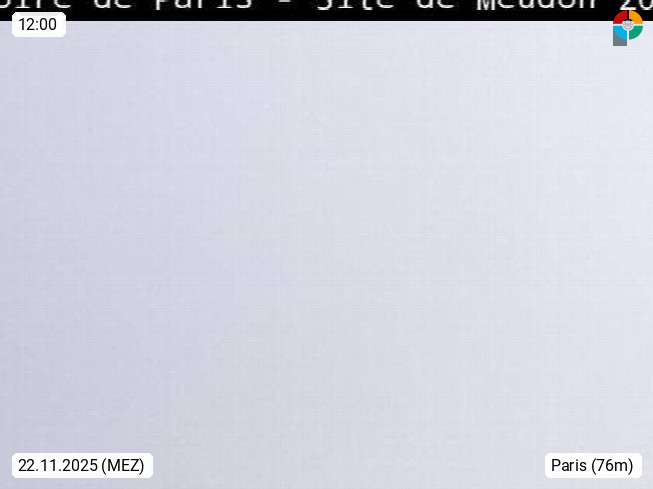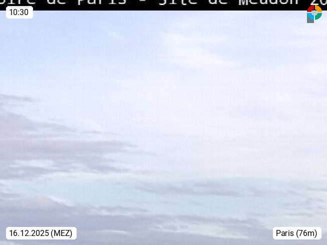 F 75001 Paris 60m, Hauptstadt Frankreichs und der Region Ile de France (Ile de France). Der Fluss Seine teilt die Stadt in einen nördlichen (rive droite rechtes Ufer) und einen südlichen Teil (rive gauche linkes Ufer). Panoramablick von der Innenstadt Richtung Nordwest vom Eiffelturm 325m links, bis rechts der Basilique du Sacre Coeur (Basilika vom Heiligen Herzen) am Montmartre 130 m, der höchsten Erhebung der Stadt. Präsentiert von https://www.obspm.fr.