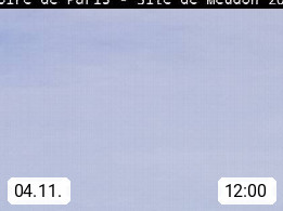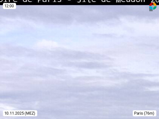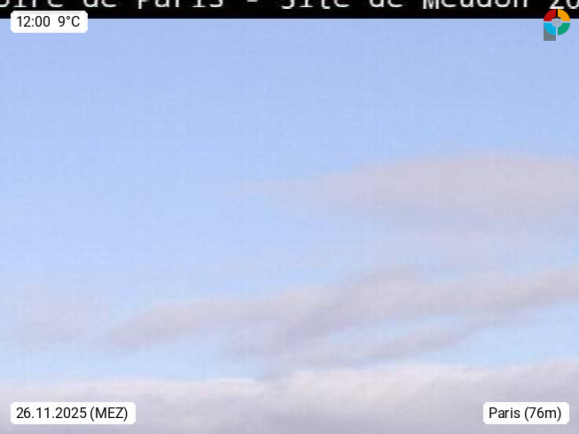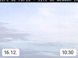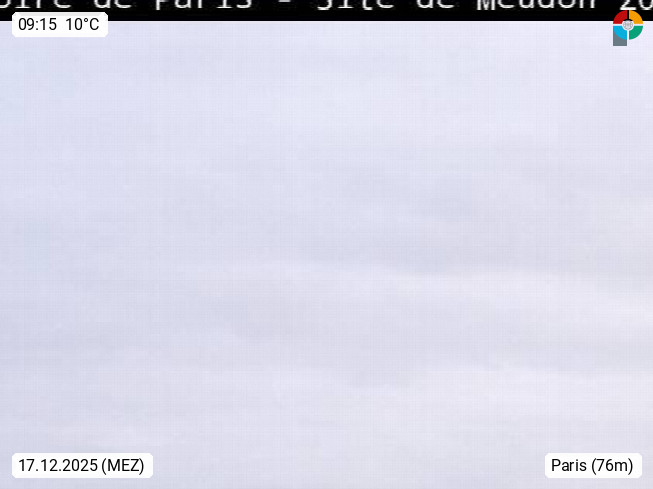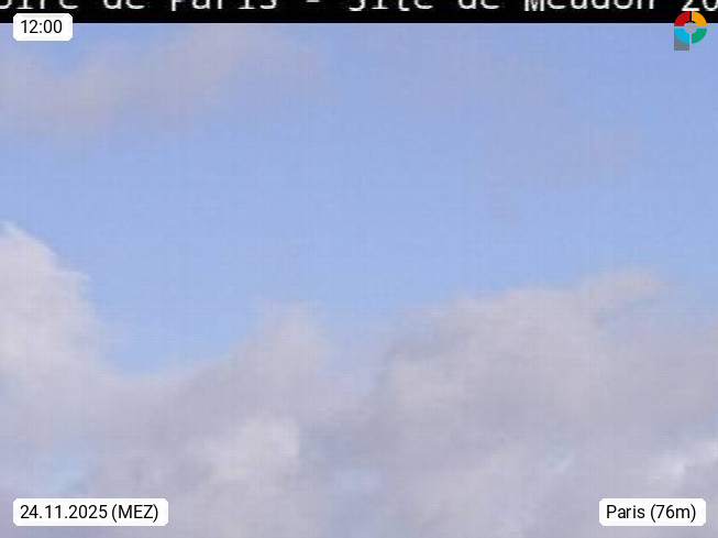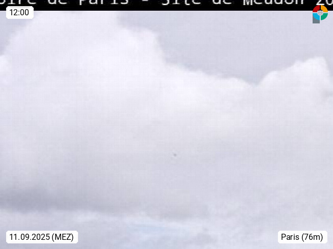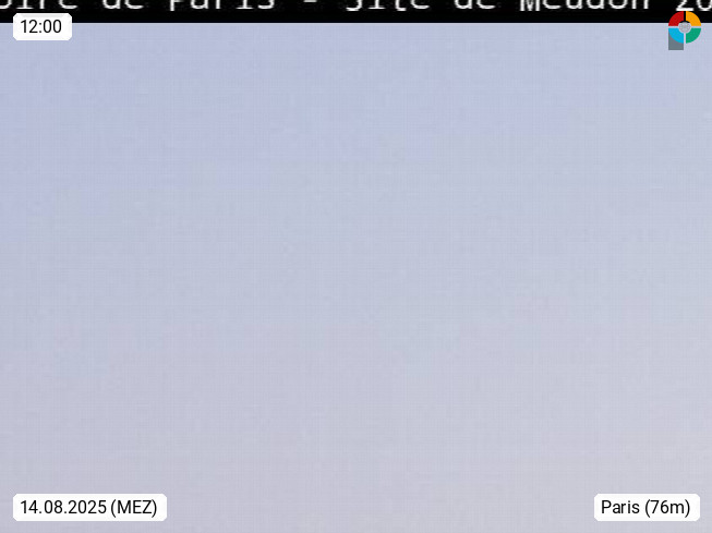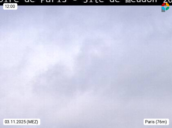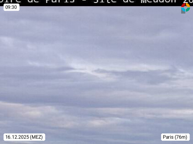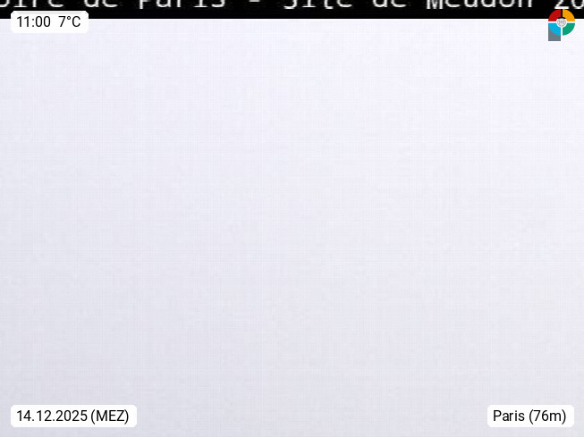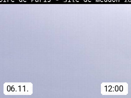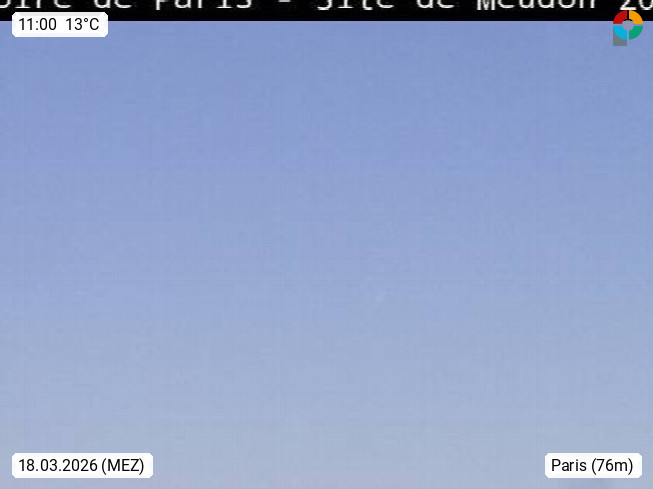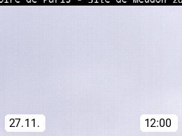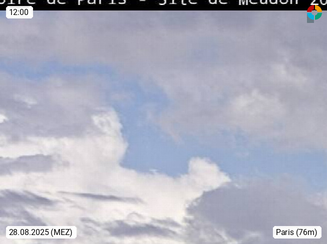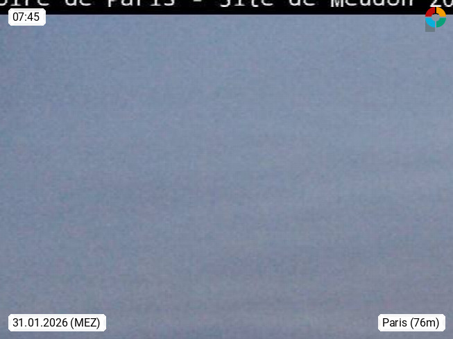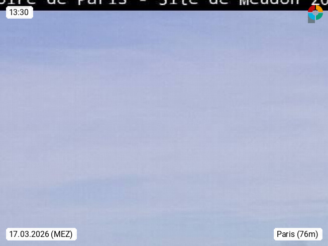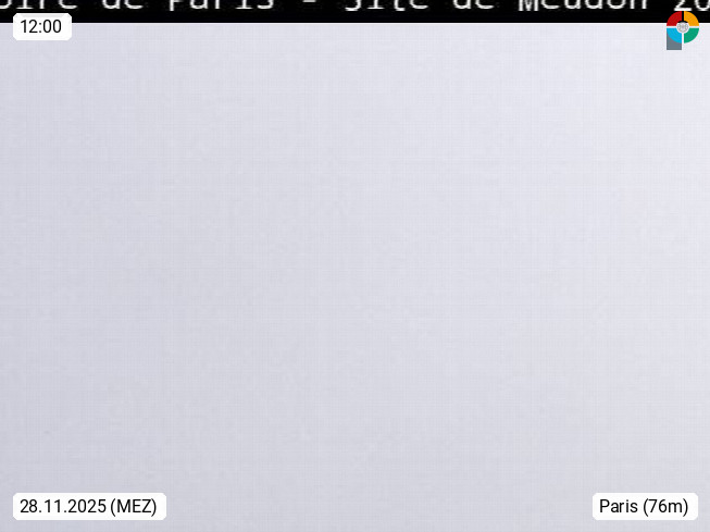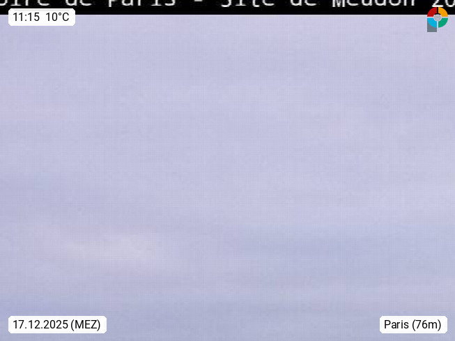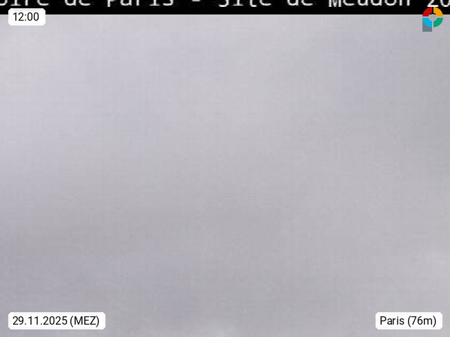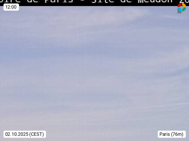 F 75001 Paris 60m, Hauptstadt Frankreichs und der Region Ile de France (Ile de France). Der Fluss Seine teilt die Stadt in einen nördlichen (rive droite rechtes Ufer) und einen südlichen Teil (rive gauche linkes Ufer). Panoramablick von der Innenstadt Richtung Nordwest vom Eiffelturm 325m links, bis rechts der Basilique du Sacre Coeur (Basilika vom Heiligen Herzen) am Montmartre 130 m, der höchsten Erhebung der Stadt. Präsentiert von https://www.obspm.fr.