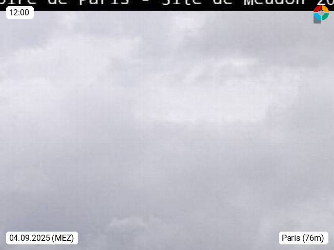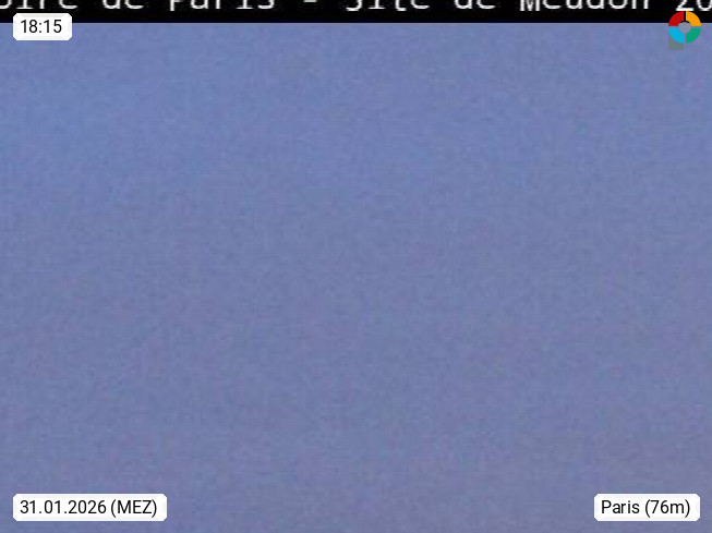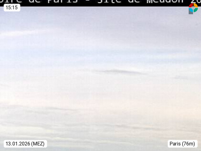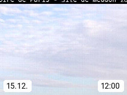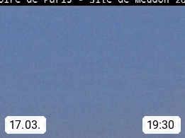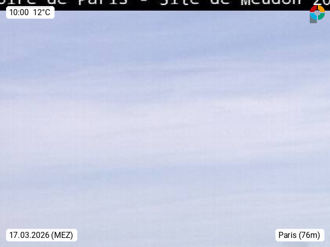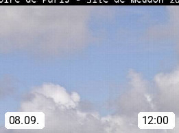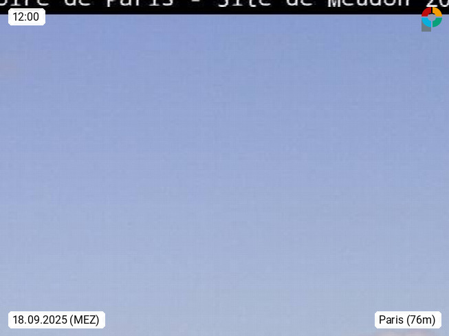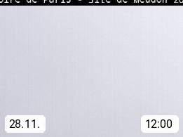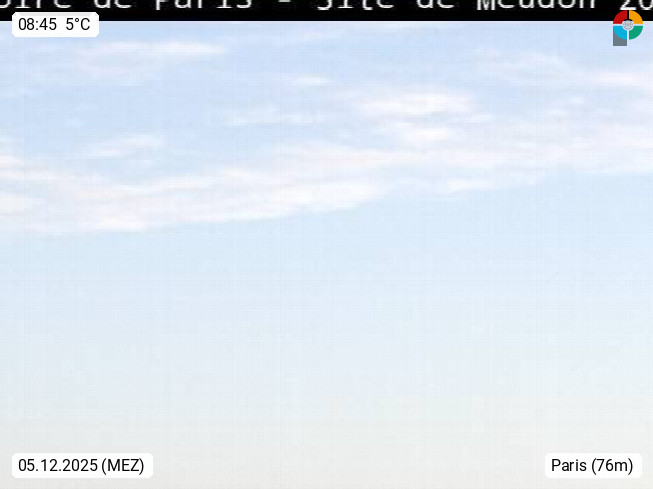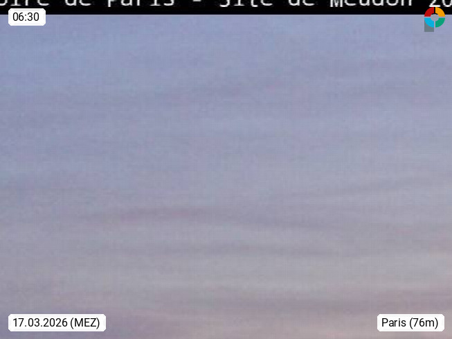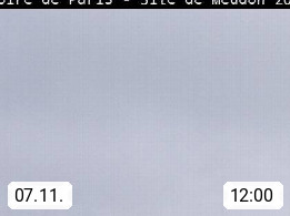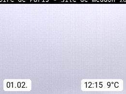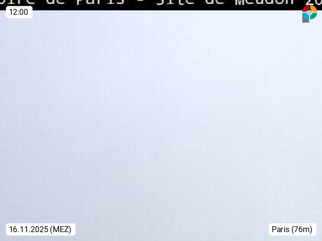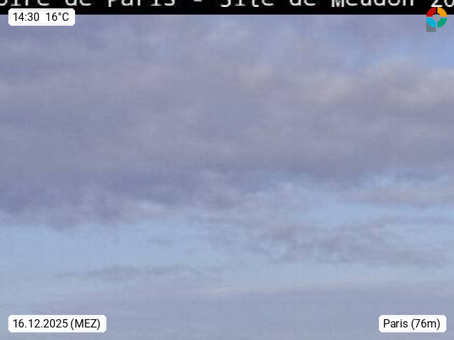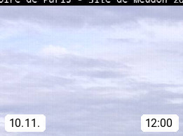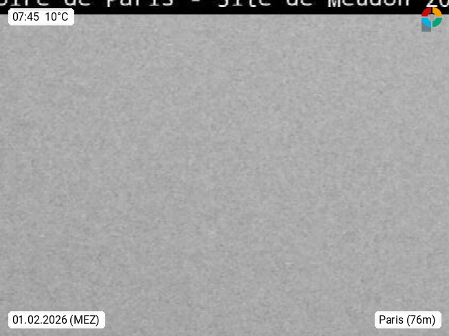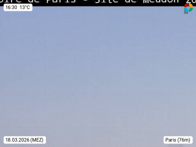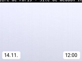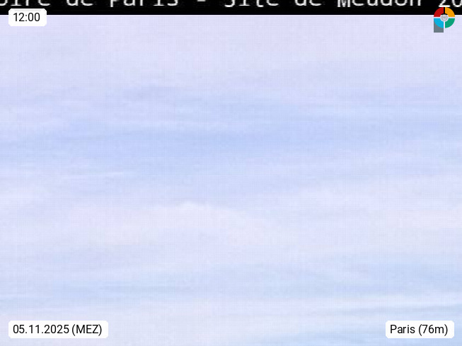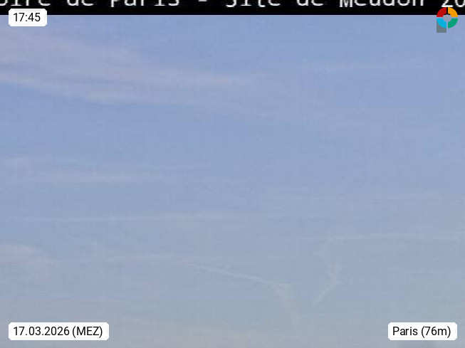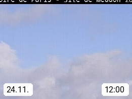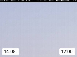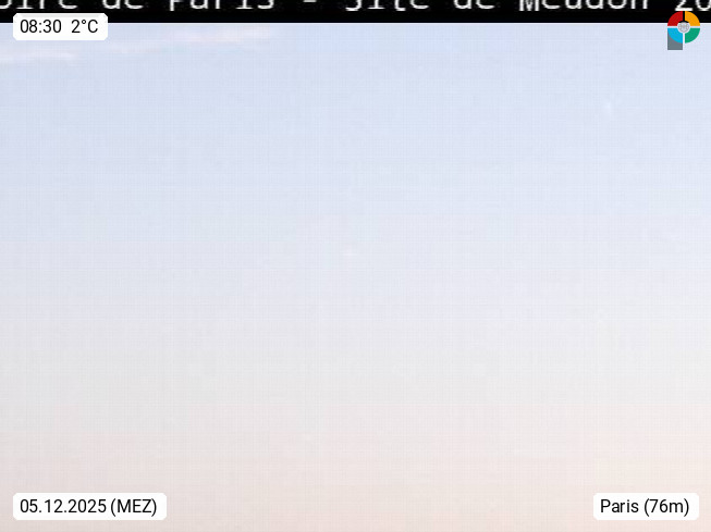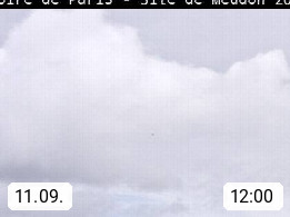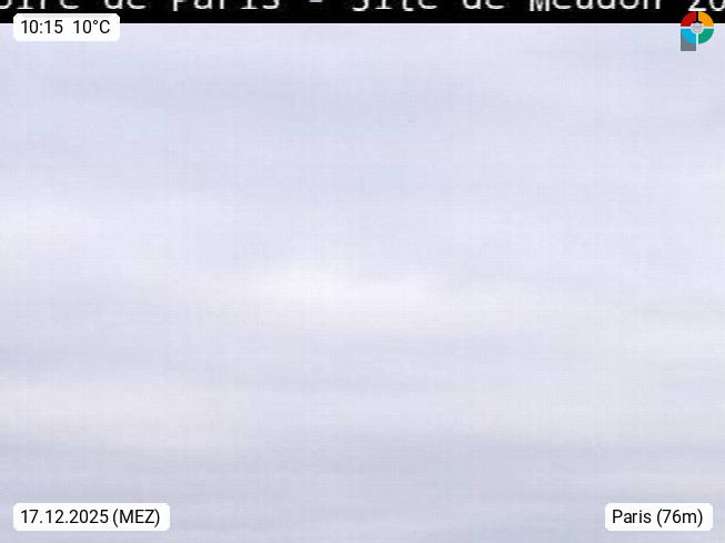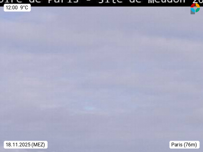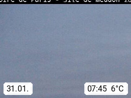 F 75001 Paris 60m, Hauptstadt Frankreichs und der Region Ile de France (Ile de France). Der Fluss Seine teilt die Stadt in einen nördlichen (rive droite rechtes Ufer) und einen südlichen Teil (rive gauche linkes Ufer). Panoramablick von der Innenstadt Richtung Nordwest vom Eiffelturm 325m links, bis rechts der Basilique du Sacre Coeur (Basilika vom Heiligen Herzen) am Montmartre 130 m, der höchsten Erhebung der Stadt. Präsentiert von https://www.obspm.fr.