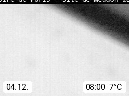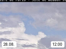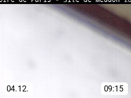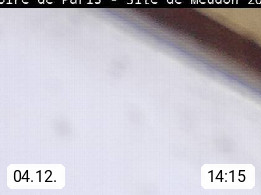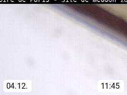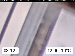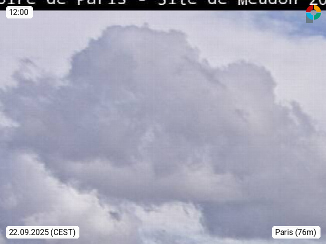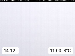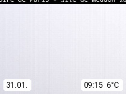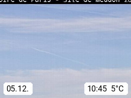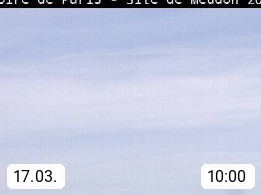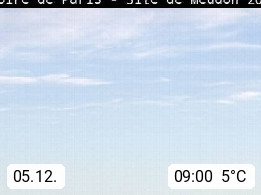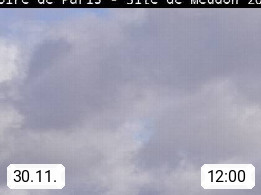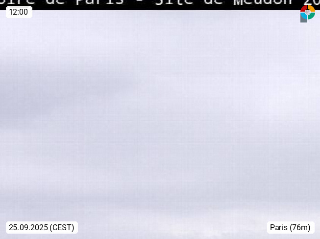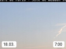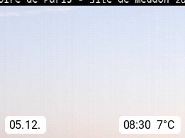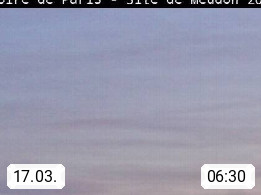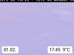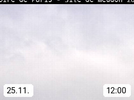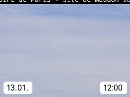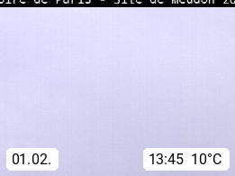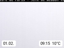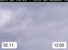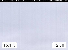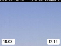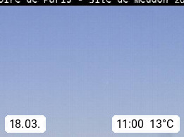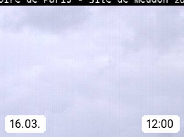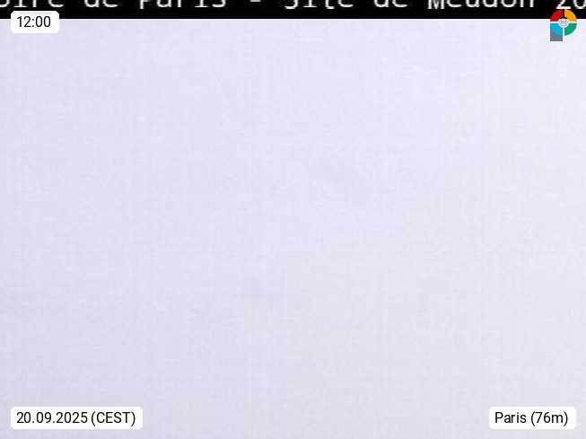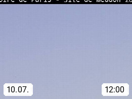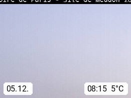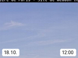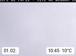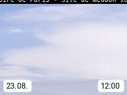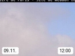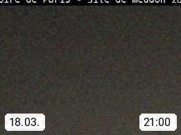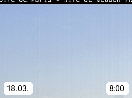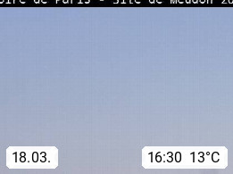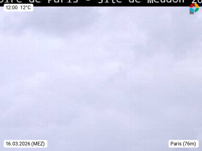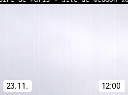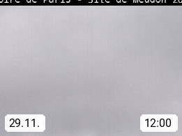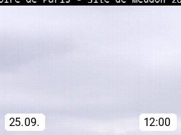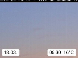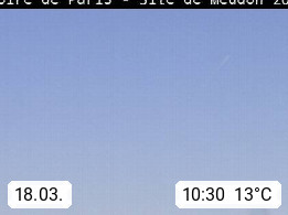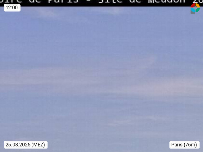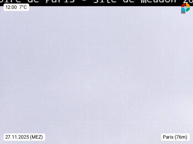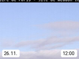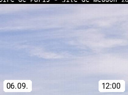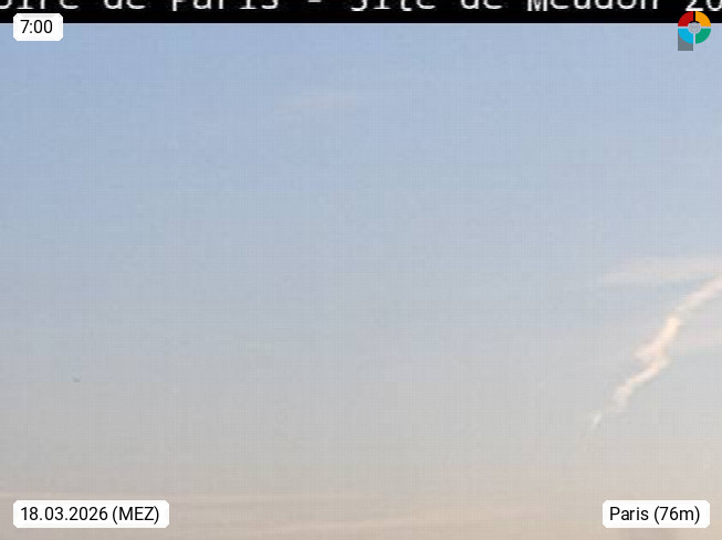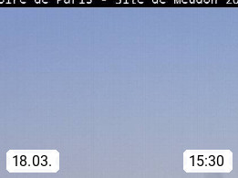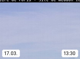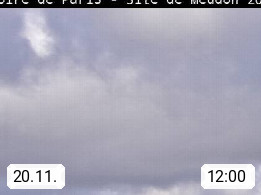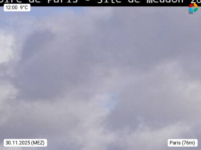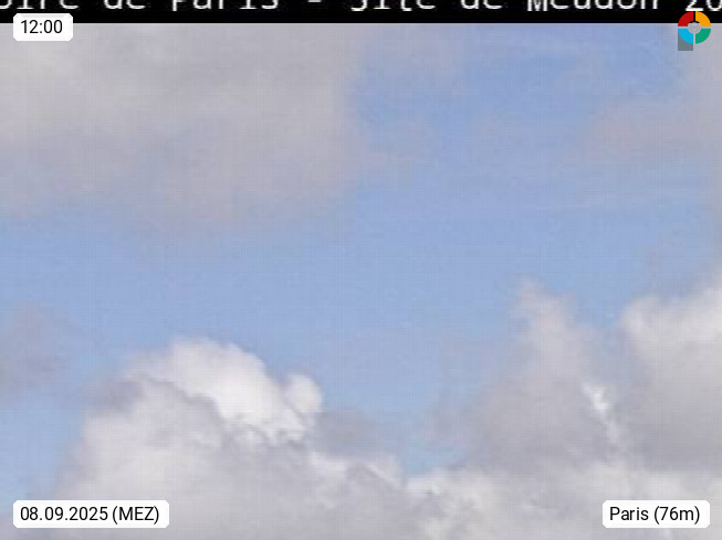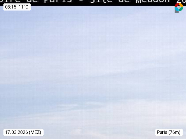 F 75001 Paris 60m, Hauptstadt Frankreichs und der Region Ile de France (Ile de France). Der Fluss Seine teilt die Stadt in einen nördlichen (rive droite rechtes Ufer) und einen südlichen Teil (rive gauche linkes Ufer). Panoramablick von der Innenstadt Richtung Nordwest vom Eiffelturm 325m links, bis rechts der Basilique du Sacre Coeur (Basilika vom Heiligen Herzen) am Montmartre 130 m, der höchsten Erhebung der Stadt. Präsentiert von https://www.obspm.fr.