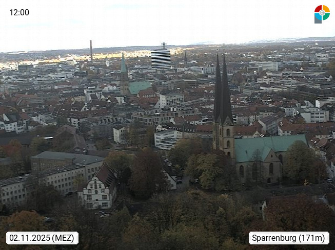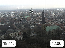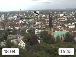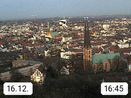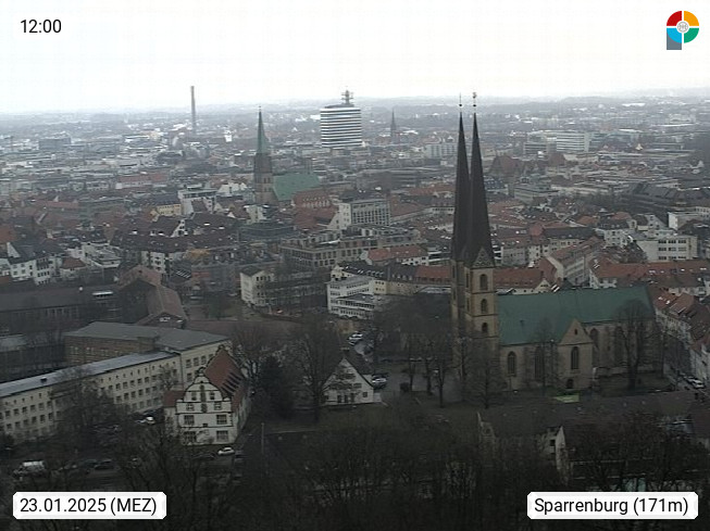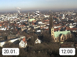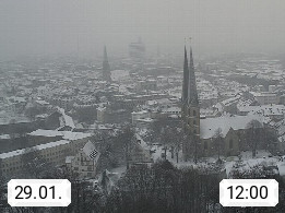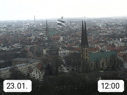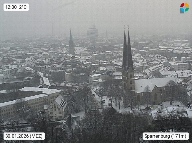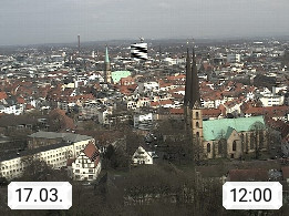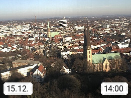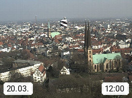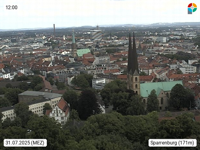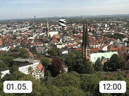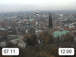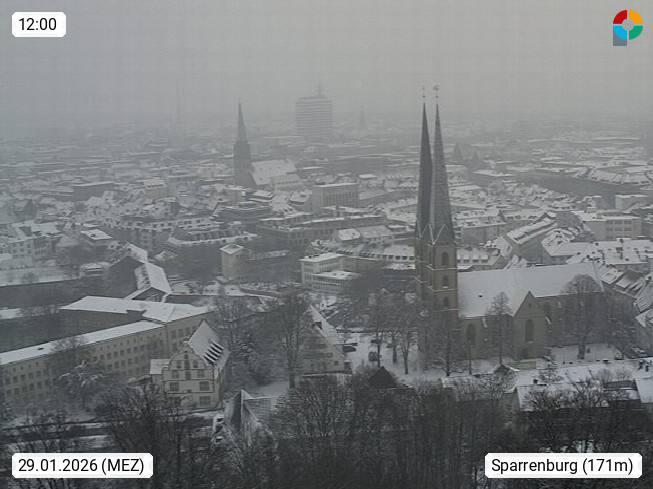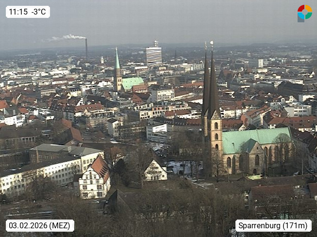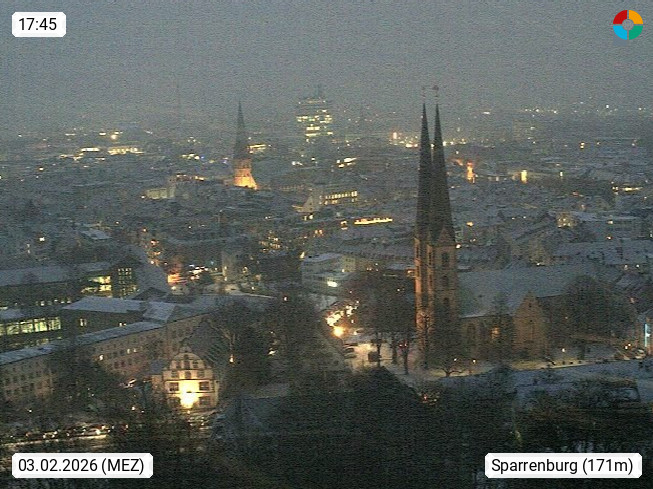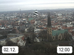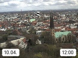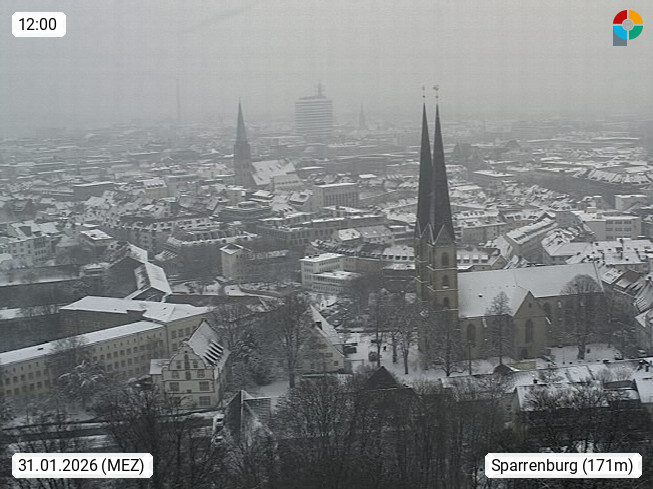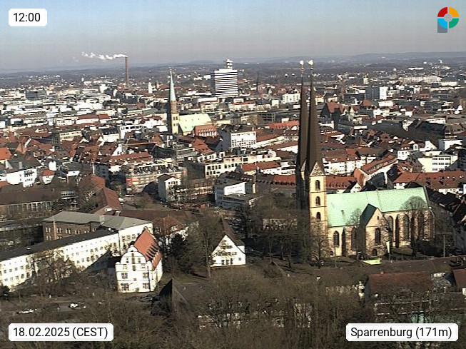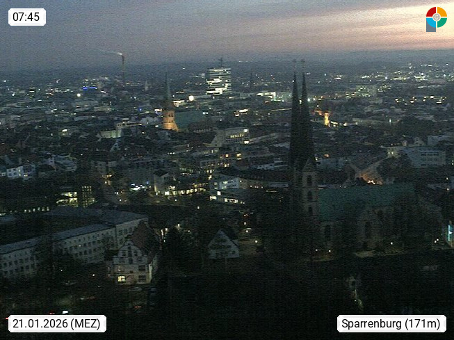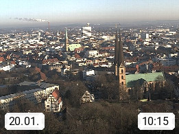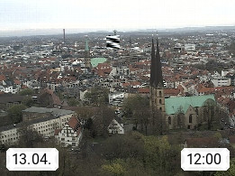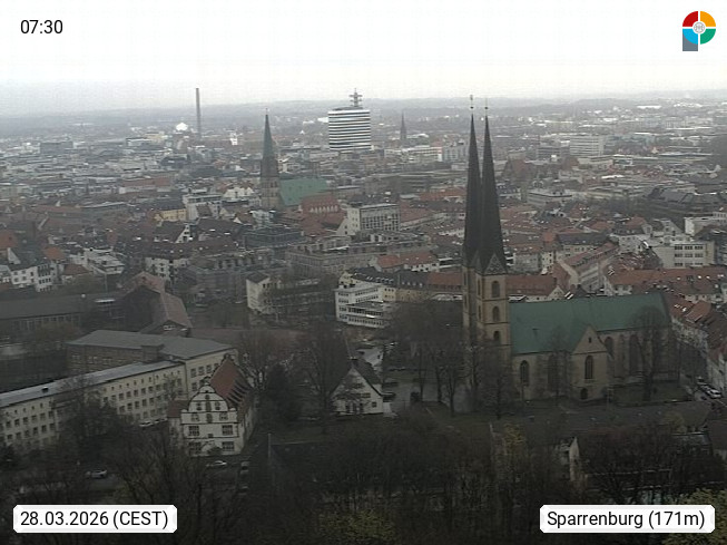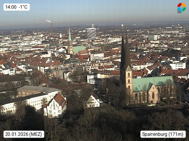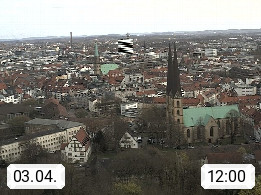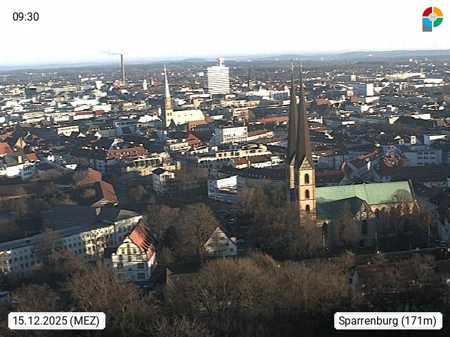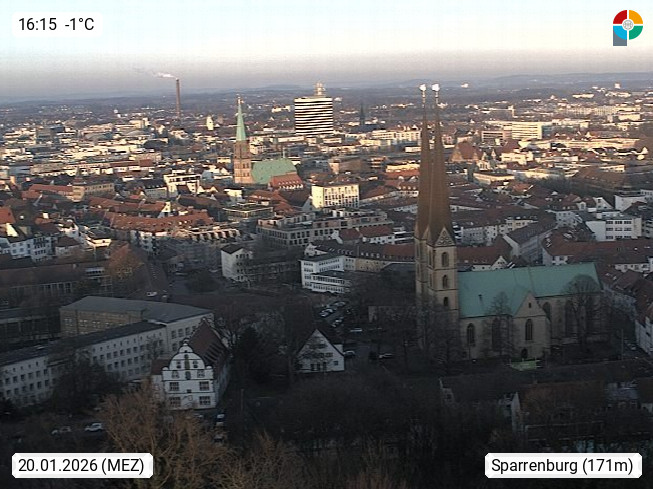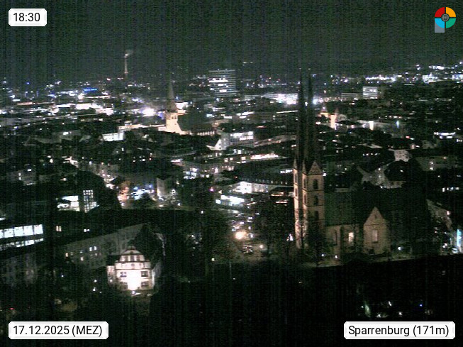 D 33609 Bielfeld Sparrenburg 182m, kreisfreie Stadt im Regierungsbezirk Detmold im Nordosten Nordrhein Westfalens in der Hügellandschaft der Ravensberger Mulde. Panoramablick von der Sparrenburg einer restaurierten Festungsanlage und Wahrzeichen von Bielefeld, Richtung Norden. Präsentiert von https://bicos.de/.