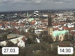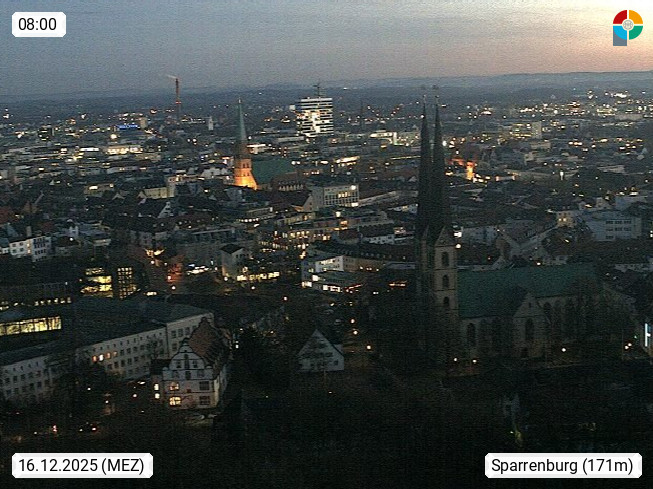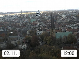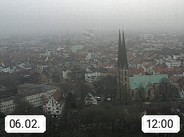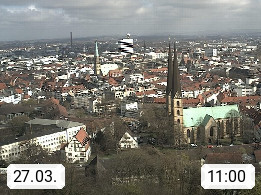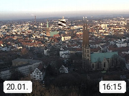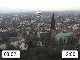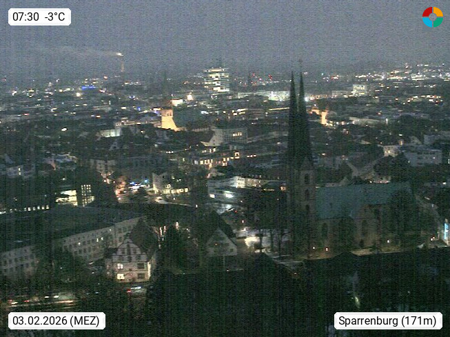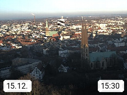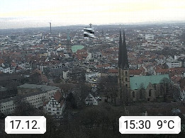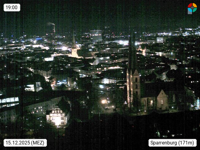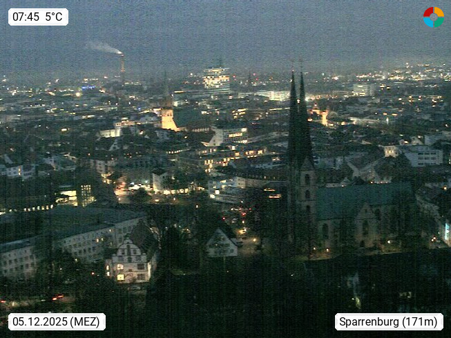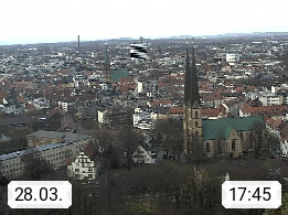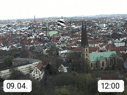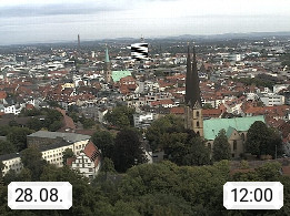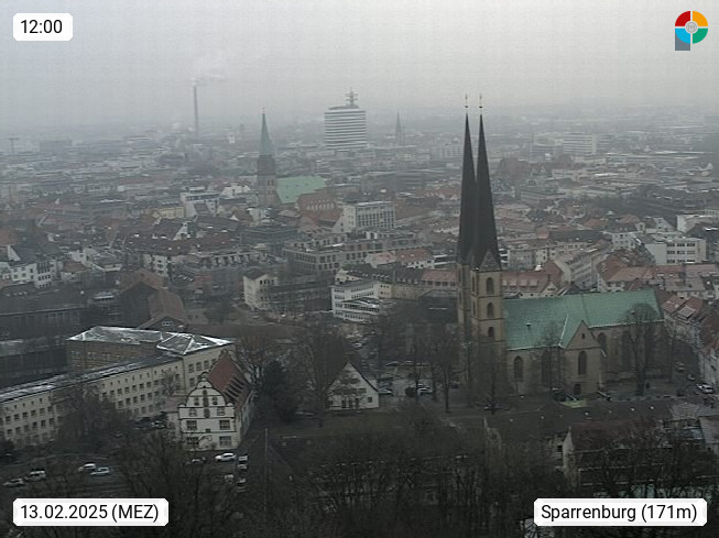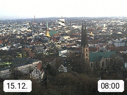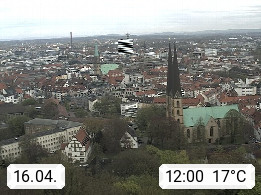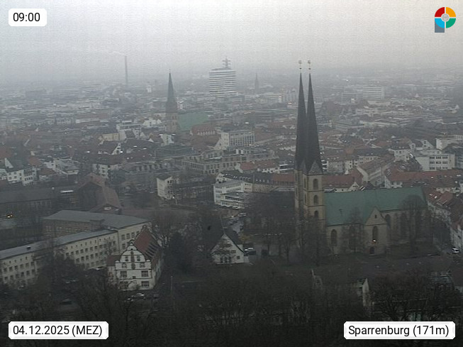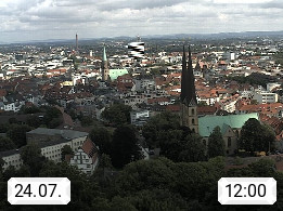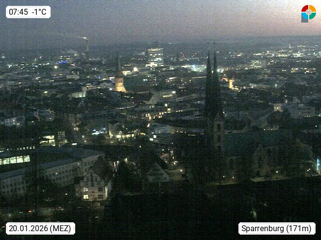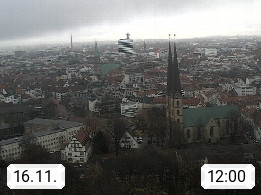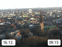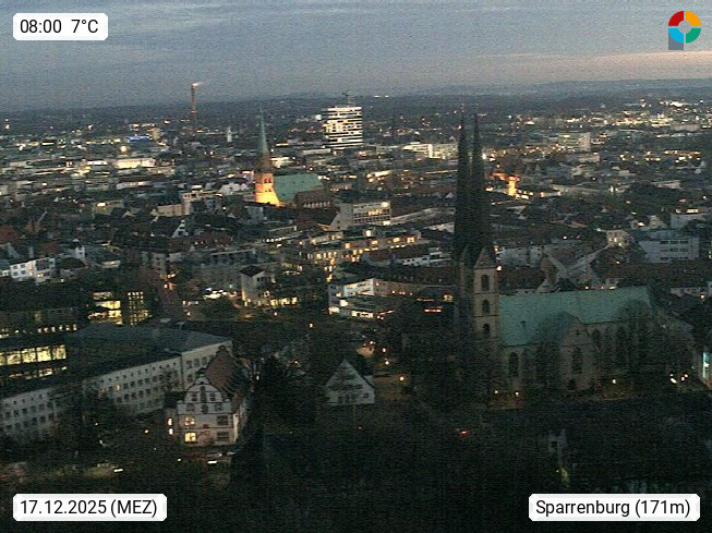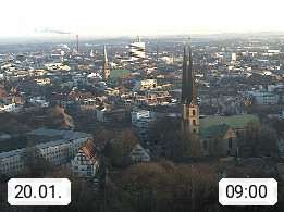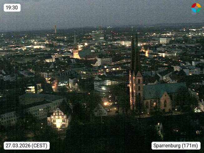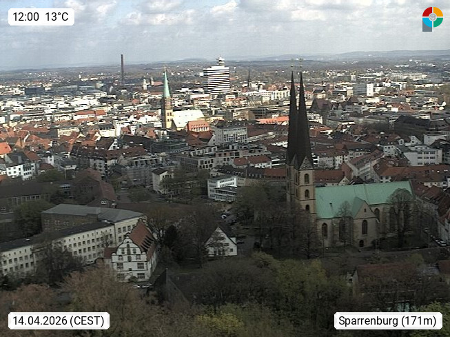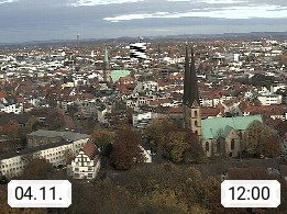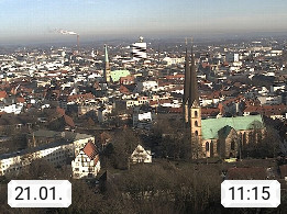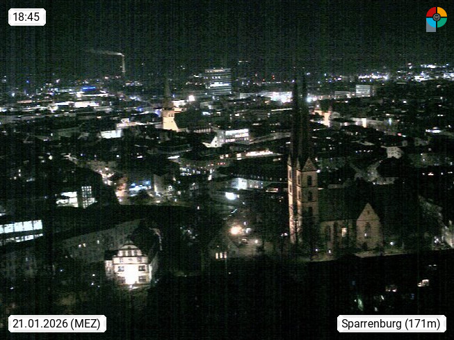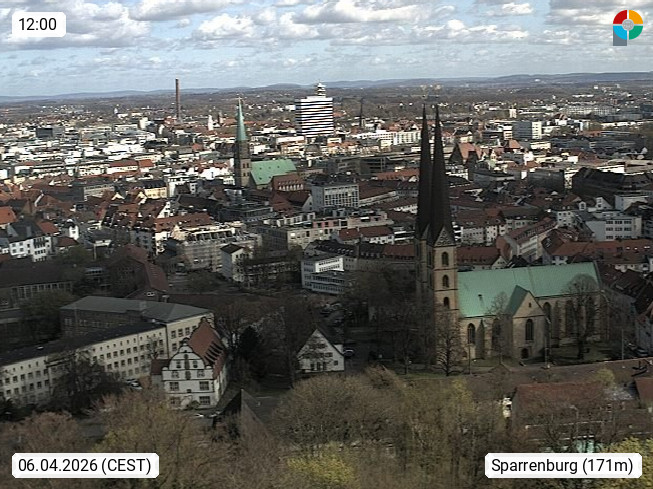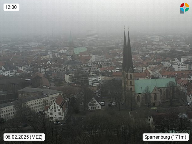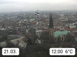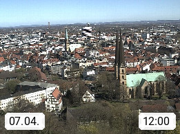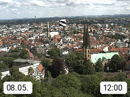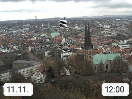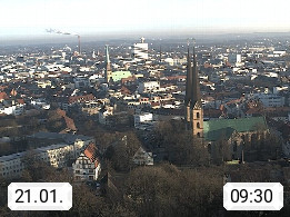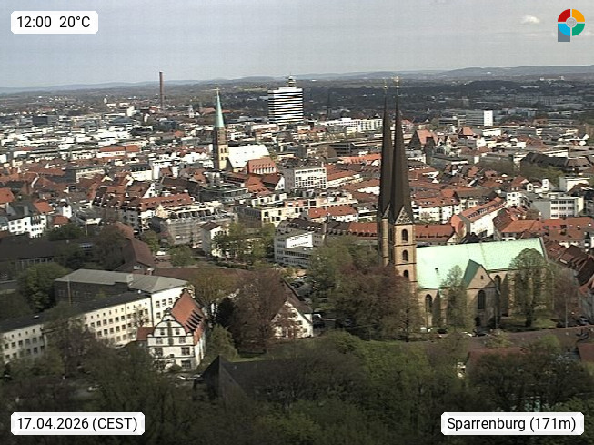 D 33609 Bielfeld Sparrenburg 182m, kreisfreie Stadt im Regierungsbezirk Detmold im Nordosten Nordrhein Westfalens in der Hügellandschaft der Ravensberger Mulde. Panoramablick von der Sparrenburg einer restaurierten Festungsanlage und Wahrzeichen von Bielefeld, Richtung Norden. Präsentiert von https://bicos.de/.