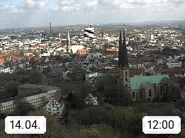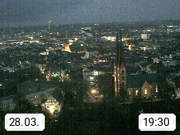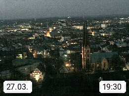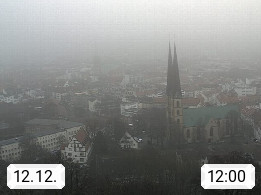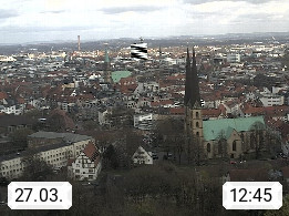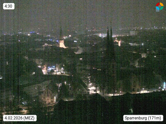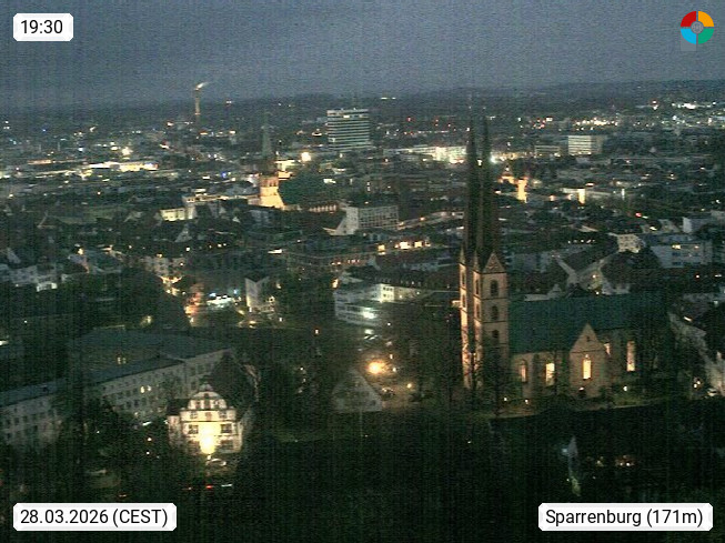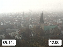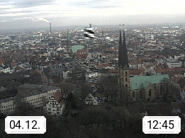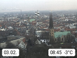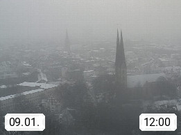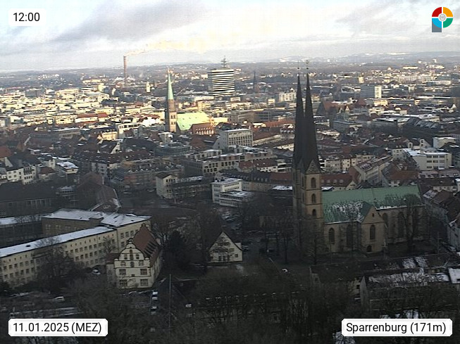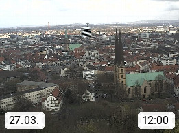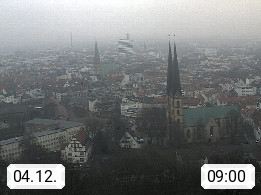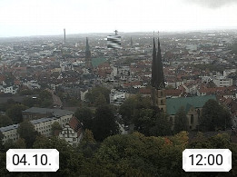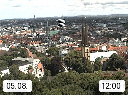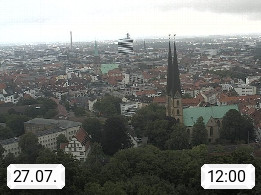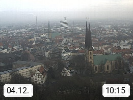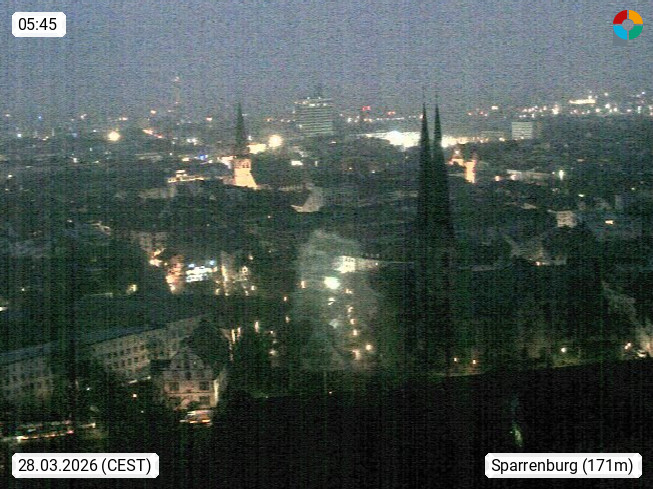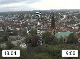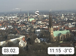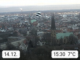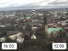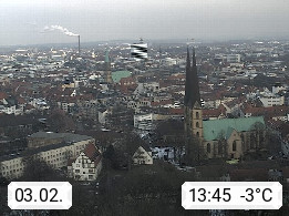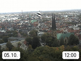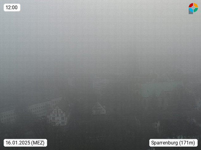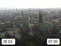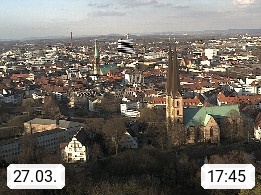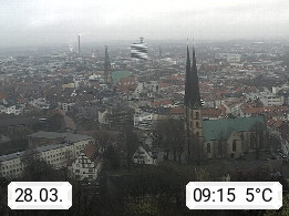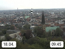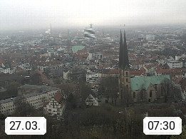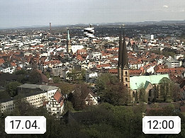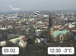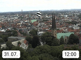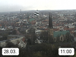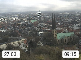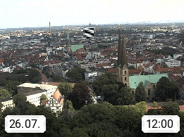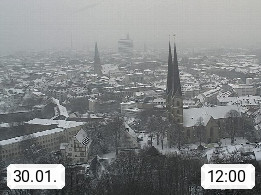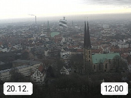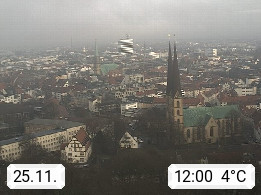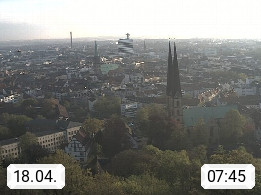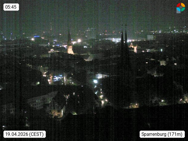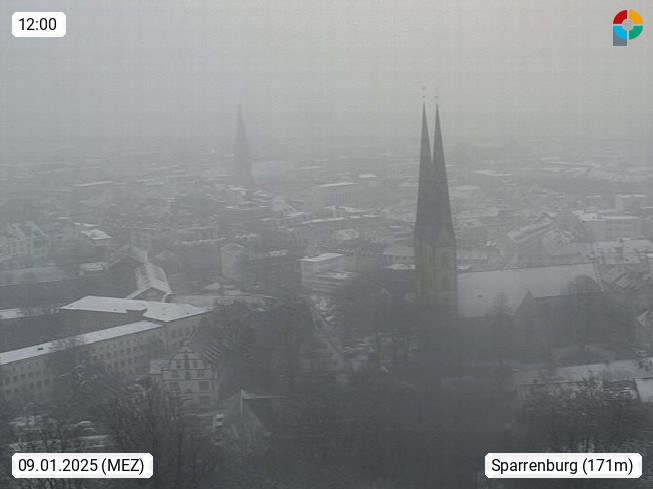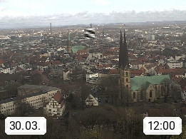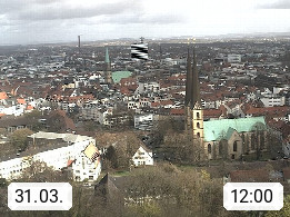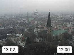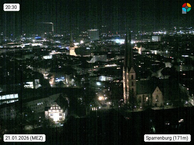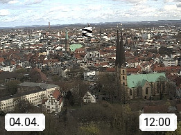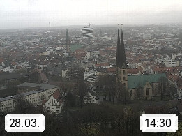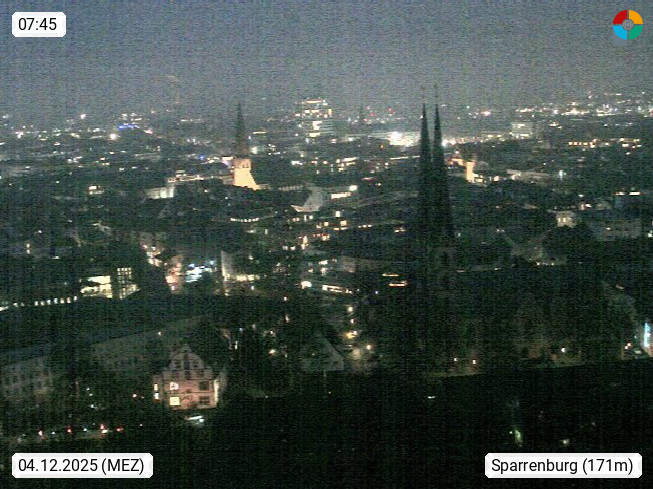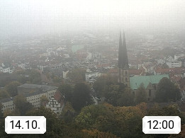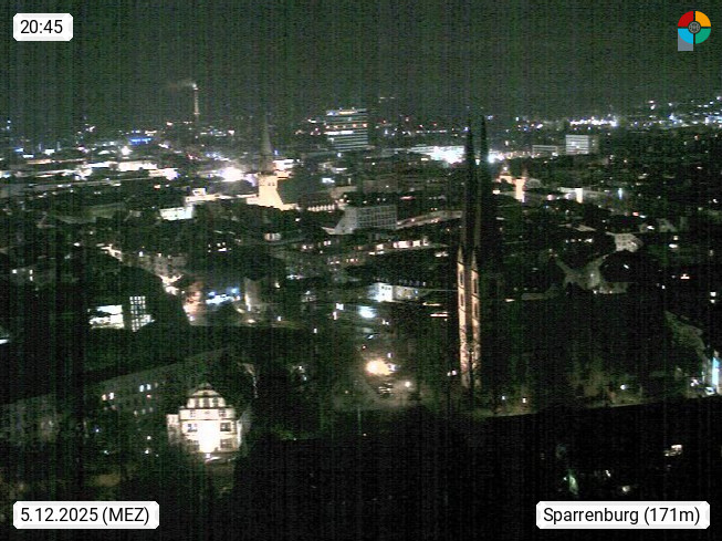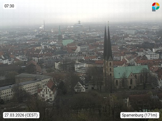 D 33609 Bielfeld Sparrenburg 182m, kreisfreie Stadt im Regierungsbezirk Detmold im Nordosten Nordrhein Westfalens in der Hügellandschaft der Ravensberger Mulde. Panoramablick von der Sparrenburg einer restaurierten Festungsanlage und Wahrzeichen von Bielefeld, Richtung Norden. Präsentiert von https://bicos.de/.