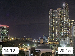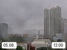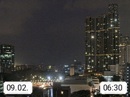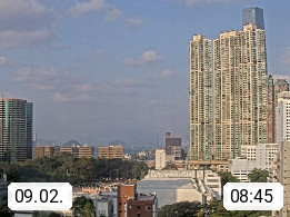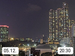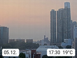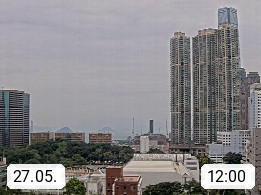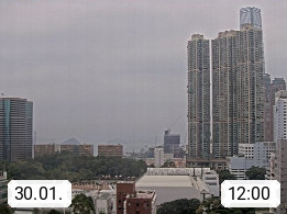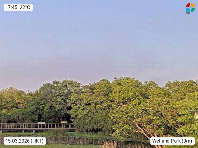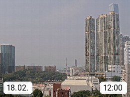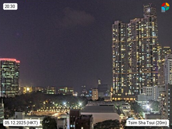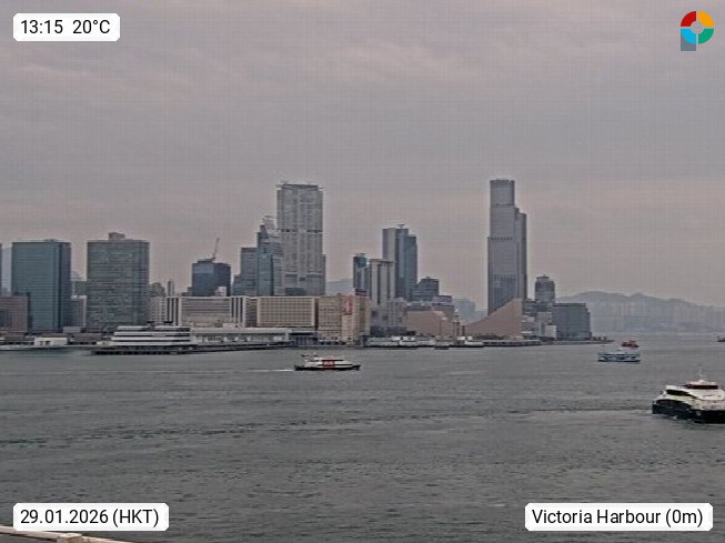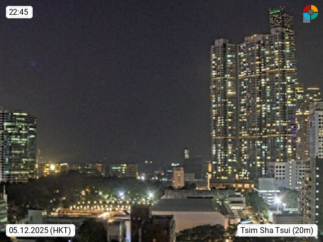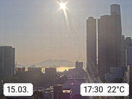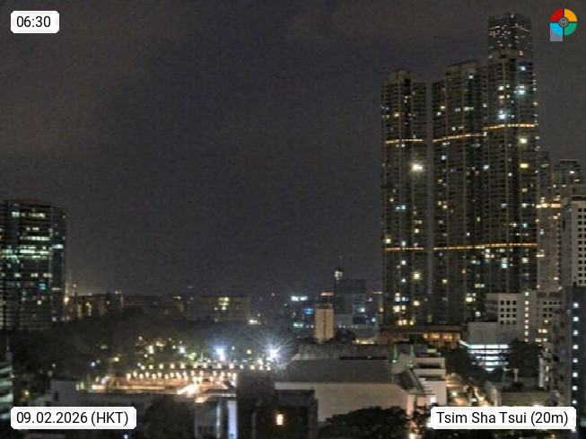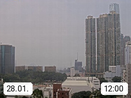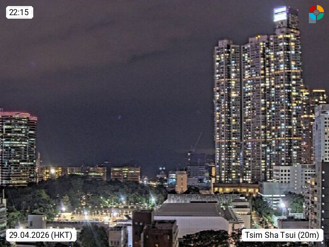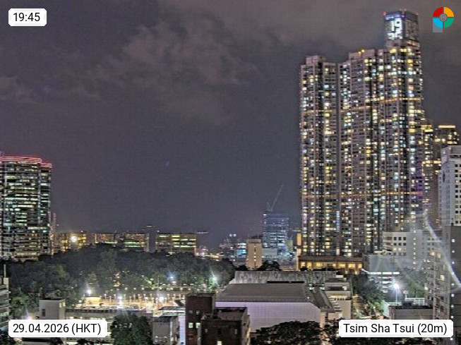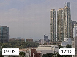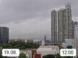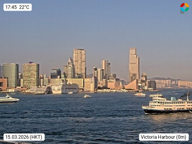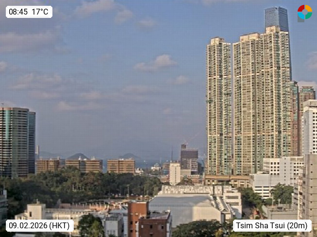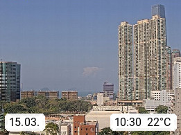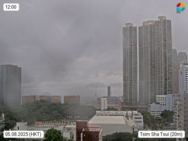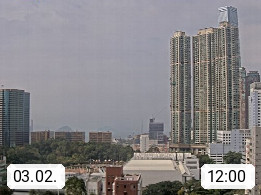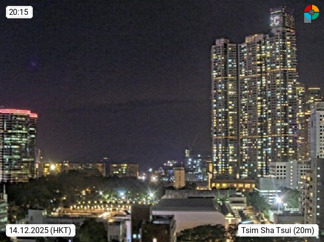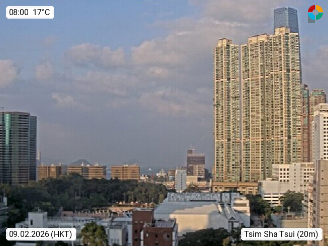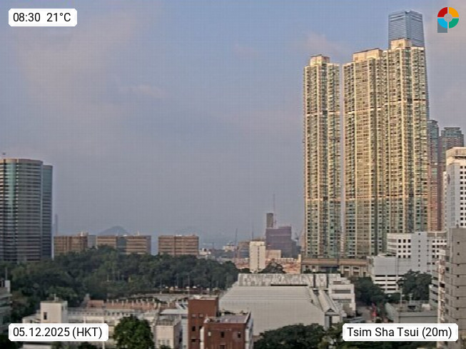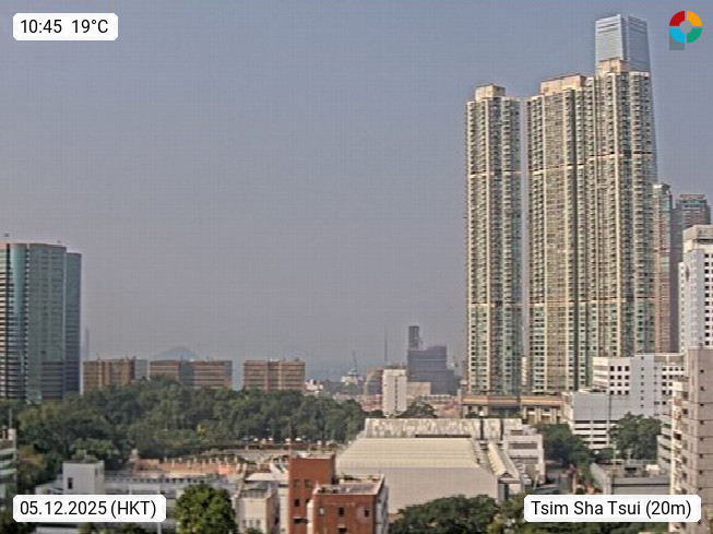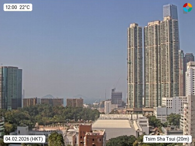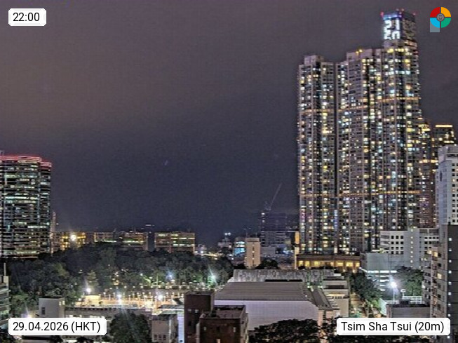 Hongkong 2.755 km² seit 1997 Hong Kong Special Administrative Region of the People Republic of China, eine Sonderverwaltungszone an der Südküste der Volksrepublik China. Hongkong liegt an der Mündung des Perlflusses in das südchinesische Meer und erstreckt sich über eine Halbinsel und rund 260 dazu gehörenden Inseln. Hongkong ist hinsichtlich der Bevölkerungszahl mit rund 7 Mio Einwohnern die drittgrößte Metropolregion der Volksrepublik China. Blick vom Bürogebäude des Wetterdienstes in Honkong Richtung Westen, von links beginnend, Kowloon Park, Green Island, Kau Yi Chau, und im Hintergrund den Sunset Peak. Präsentiert von https://www.hko.gov.hk/.